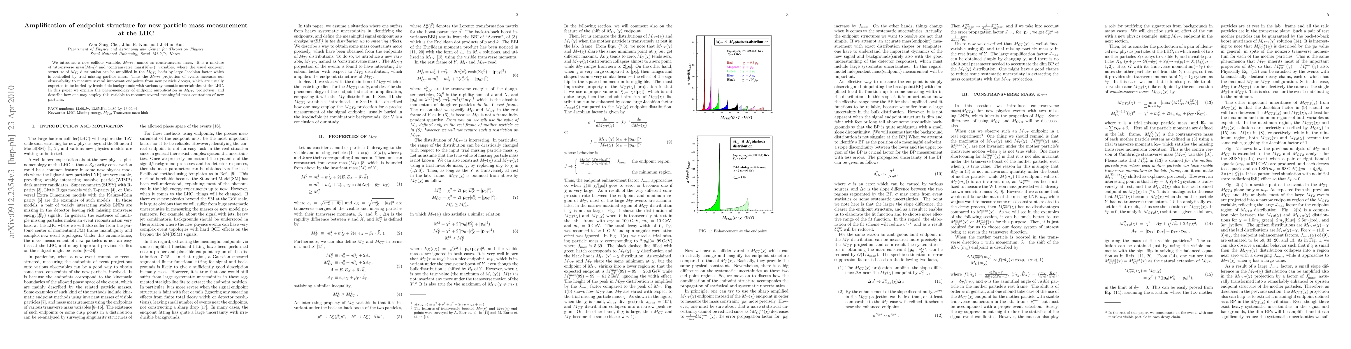We introduce a new collider variable, MCT2, named as constransverse mass. It is a mixture of `stransverse mass(MT2)' and `contransverse mass(MCT)' variables, where the usual endpoint structure of MT2 distribution can be amplified in the MCT2 basis by large Jacobian factor which is controlled by trial missing particle mass. Thus the MCT2 projection of events increases our observability to measure several important endpoints from new particle decays, which are usually expected to be buried by irreducible backgrounds with various systematic uncertainties at the LHC. In this paper we explain the phenomenology of endpoint amplification in MCT2 projection, and describe how one may employ this variable to measure several meaningful mass constraints of new particles.