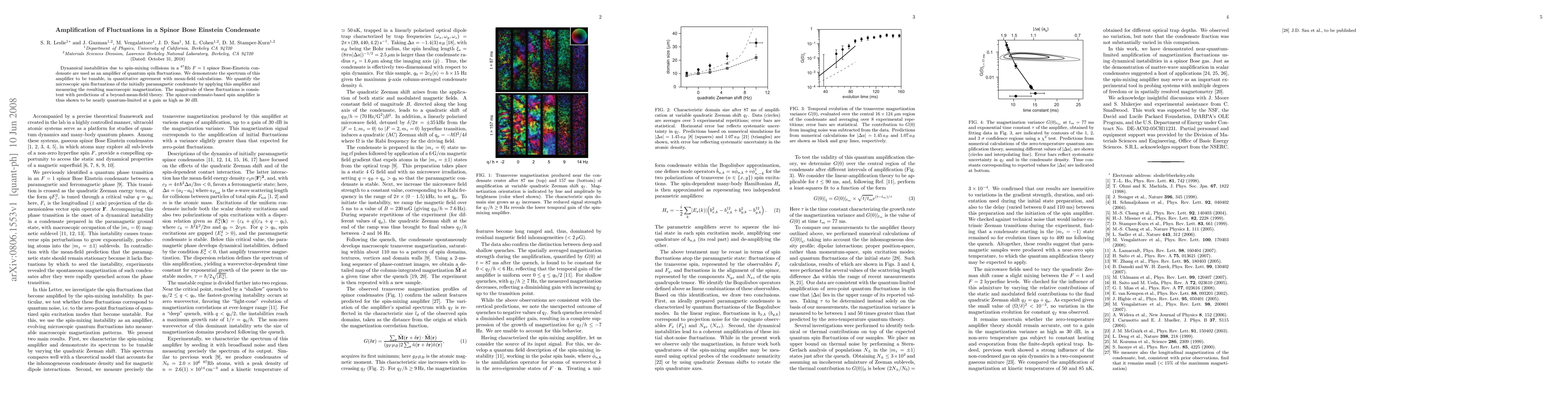 This research demonstrates that spin-mixing collisions in a spinor Bose-Einstein condensate can amplify quantum spin fluctuations, with a tunable spectrum matching mean-field calculations. The method successfully measures microscopic spin fluctuations, confirming predictions from beyond-mean-field theory and achieving nearly quantum-limited amplification with a gain of up to 30 dB.