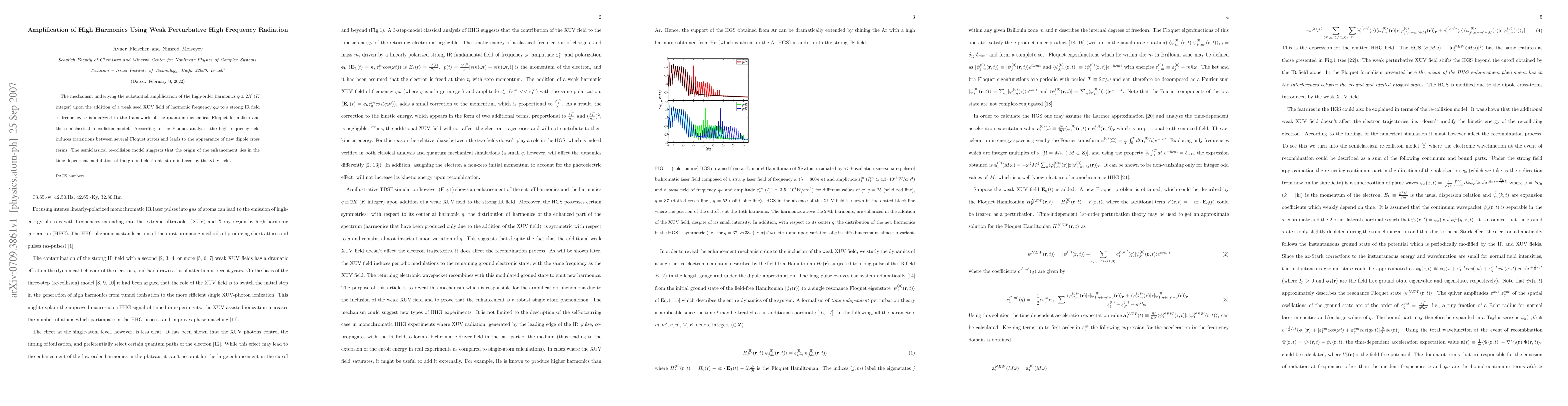 The mechanism underlying the substantial amplification of the high-order harmonics q \pm 2K (K integer) upon the addition of a weak seed XUV field of harmonic frequency q\omega to a strong IR field of frequency \omega is analyzed in the framework of the quantum-mechanical Floquet formalism and the semiclassical re-collision model. According to the Floquet analysis, the high-frequency field induces transitions between several Floquet states and leads to the appearance of new dipole cross terms. The semiclassical re-collision model suggests that the origin of the enhancement lies in the time-dependent modulation of the ground electronic state induced by the XUV field.