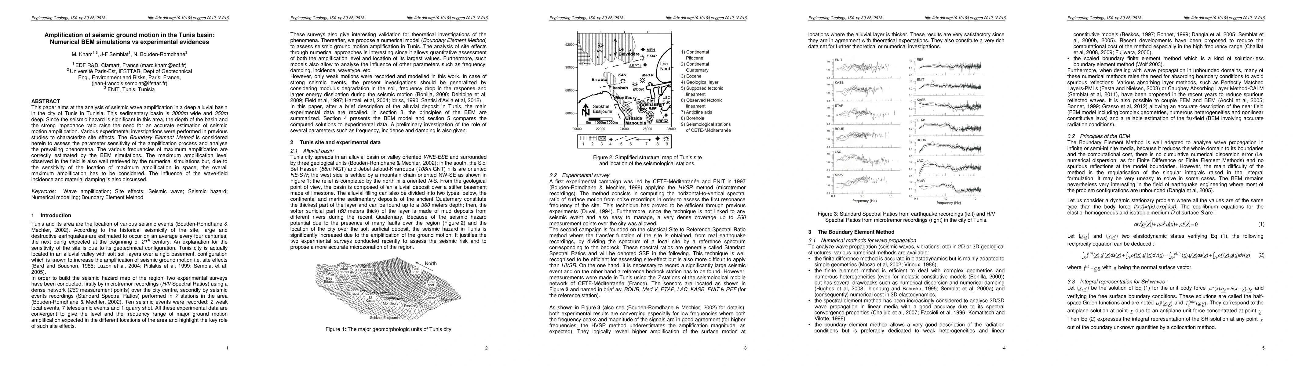 This paper investigates seismic wave amplification in the Tunis basin using numerical BEM simulations and compares results with experimental evidence. The BEM simulations accurately estimate the frequencies of maximum amplification and the overall maximum level, though spatial location sensitivity is noted.