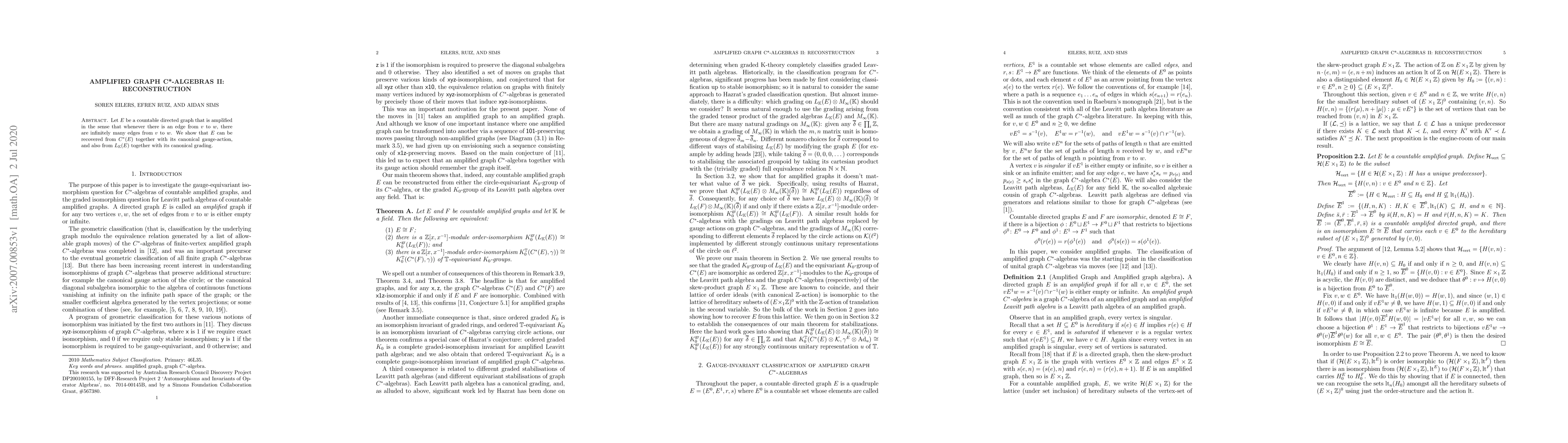 This paper demonstrates that a countable directed graph $E$ can be reconstructed from its amplified graph C*-algebra $C^*(E)$ and its gauge-action, as well as from its graded K-algebra $L_K(E)$ and its canonical grading.
