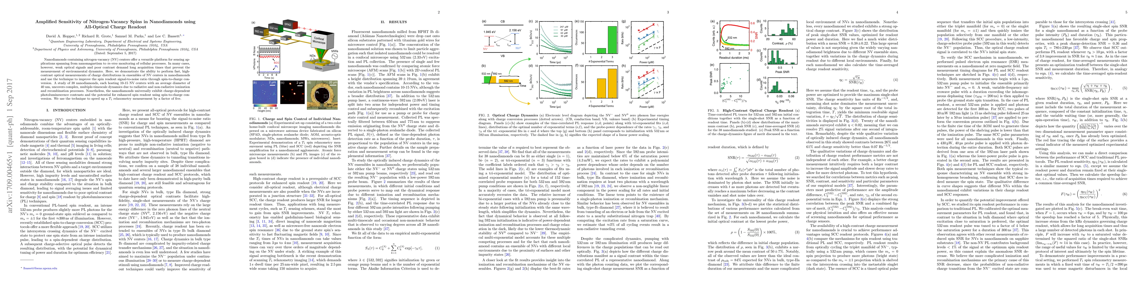 This paper demonstrates an all-optical technique to amplify the sensitivity of nitrogen-vacancy spins in nanodiamonds through enhanced charge readout, significantly improving the signal-to-noise ratio and reducing measurement time for $T_1$ relaxometry by five times. The study shows that nanodiamonds with NV centers exhibit charge-dependent photoluminescence, enabling faster and more precise sensing applications.