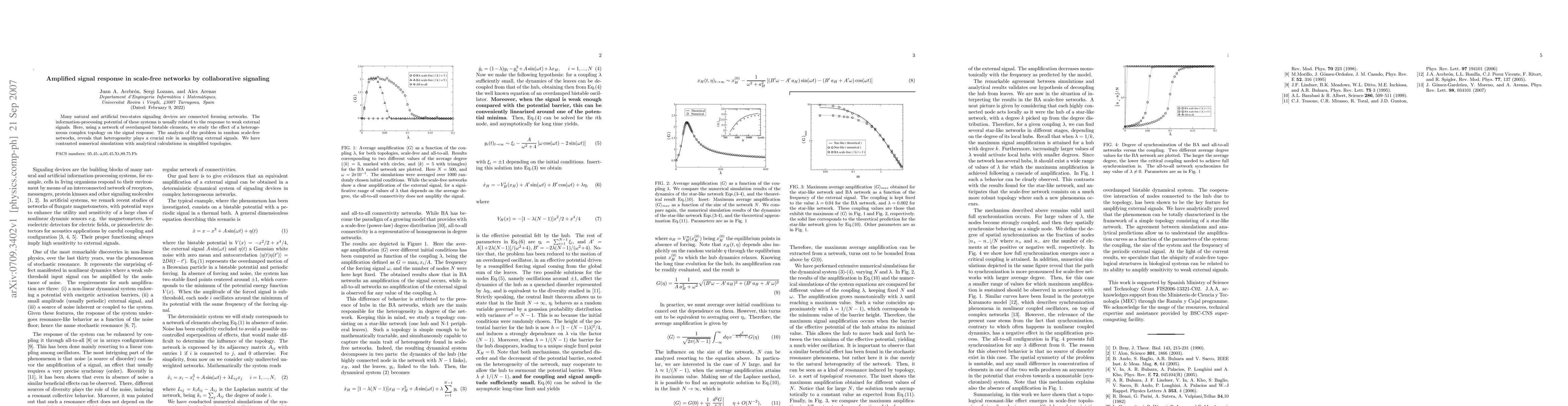 Many natural and artificial two-states signaling devices are connected forming networks. The information-processing potential of these systems is usually related to the response to weak external signals. Here, using a network of overdamped bistable elements, we study the effect of a heterogeneous complex topology on the signal response. The analysis of the problem in random scale-free networks, reveals that heterogeneity plays a crucial role in amplifying external signals. We have contrasted numerical simulations with analytical calculations in simplified topologies.