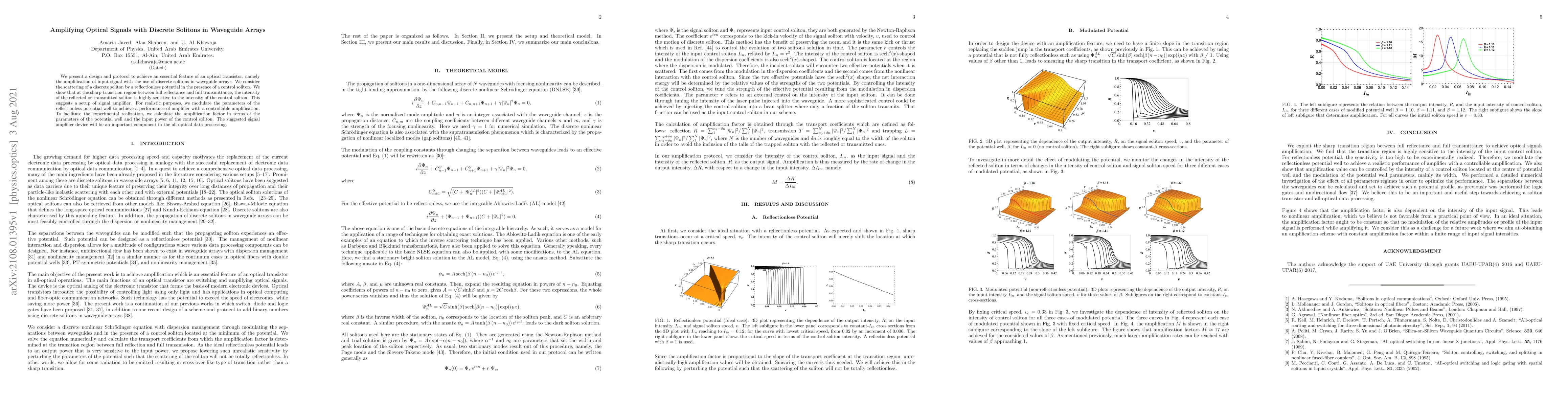 This paper proposes a design for an optical transistor using discrete solitons in waveguide arrays to amplify optical signals. The study demonstrates that the intensity of reflected or transmitted solitons is highly sensitive to the control soliton, enabling a controllable signal amplifier for all-optical data processing.