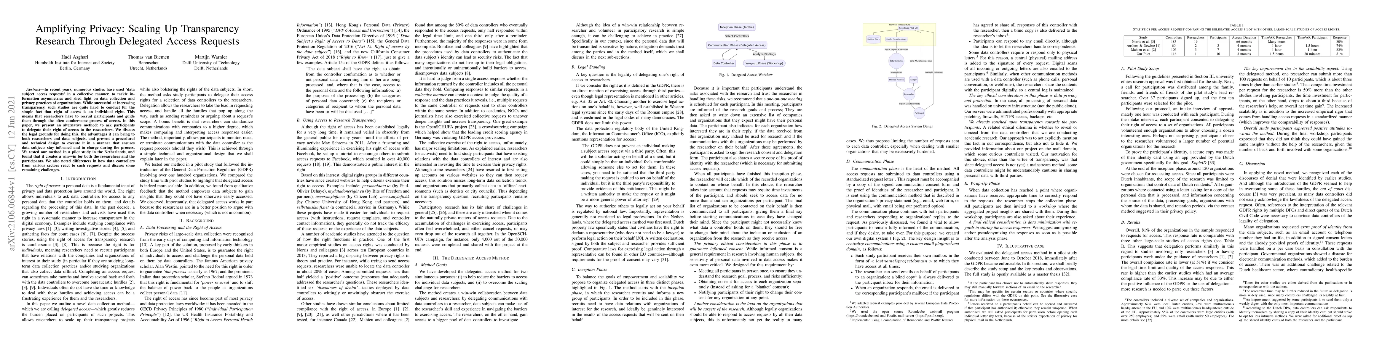 This paper proposes a method for researchers to collect data subject access requests by delegating the right of access from participants, enhancing transparency in data collection practices. The pilot study in the Netherlands demonstrated its effectiveness, while also highlighting sector-specific reactions and ongoing challenges.