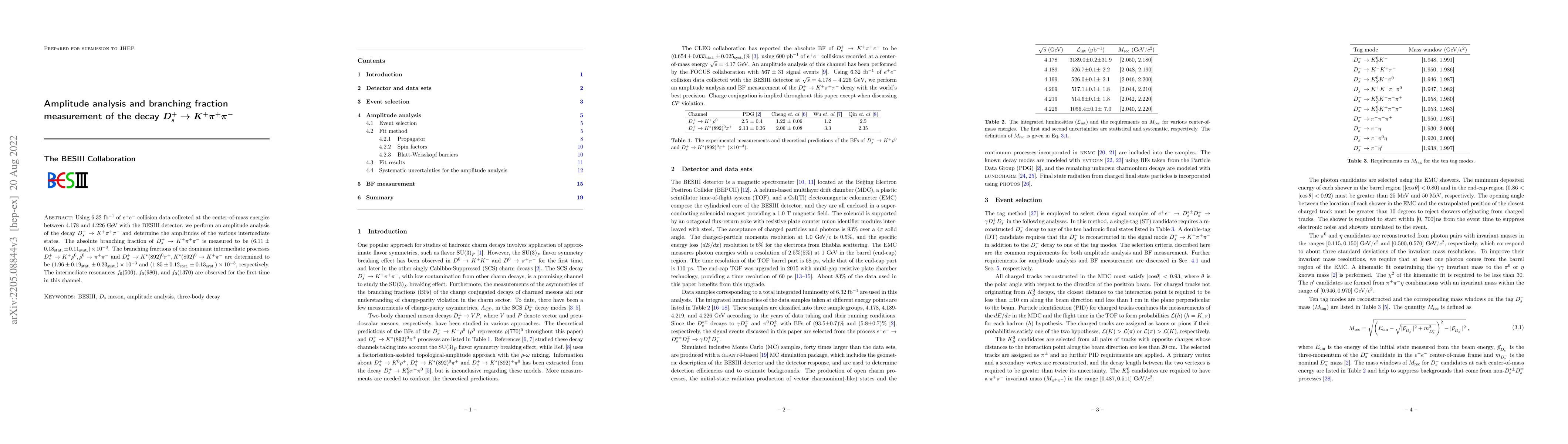 Using $6.32$ fb$^{-1}$ of $e^{+}e^{-}$ collision data collected at the center-of-mass energies between 4.178 and 4.226 GeV with the BESIII detector, we perform an amplitude analysis of the decay $D^+_s \to K^+\pi^+\pi^-$ and determine the amplitudes of the various intermediate states. The absolute branching fraction of $D^+_s\to K^+\pi^+\pi^-$ is measured to be ($6.11\pm0.18_{\rm stat.}\pm0.11_{\rm syst.})\times 10^{-3}$. The branching fractions of the dominant intermediate processes $D_{s}^{+} \to K^+\rho^0, \rho^0 \to \pi^+\pi^-$ and $D_{s}^{+} \to K^*(892)^0\pi^+, K^*(892)^0 \to K^+\pi^-$ are determined to be $(1.96\pm0.19_{\rm stat.}\pm0.23_{\rm syst.})\times 10^{-3}$ and $(1.85\pm0.12_{\rm stat.}\pm0.13_{\rm syst.})\times 10^{-3}$, respectively. The intermediate resonances $f_0(500)$, $f_0(980)$, and $f_0(1370)$ are observed for the first time in this channel.