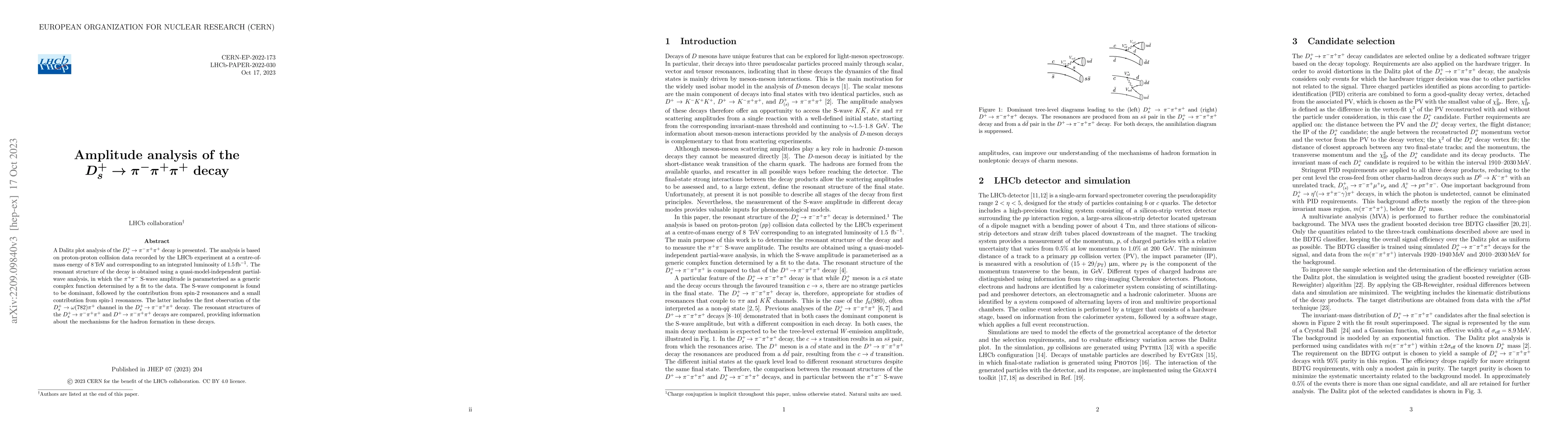 This study presents a Dalitz plot analysis of the $D_s^+ \to \pi^- \pi^+ \pi^+$ decay using LHCb data, revealing a dominant S-wave component and first observing the $D_s^+ \to \omega(782) \pi^+$ channel, while comparing resonant structures with $D^+ \to \pi^- \pi^+ \pi^+$ decay to infer hadron formation mechanisms.