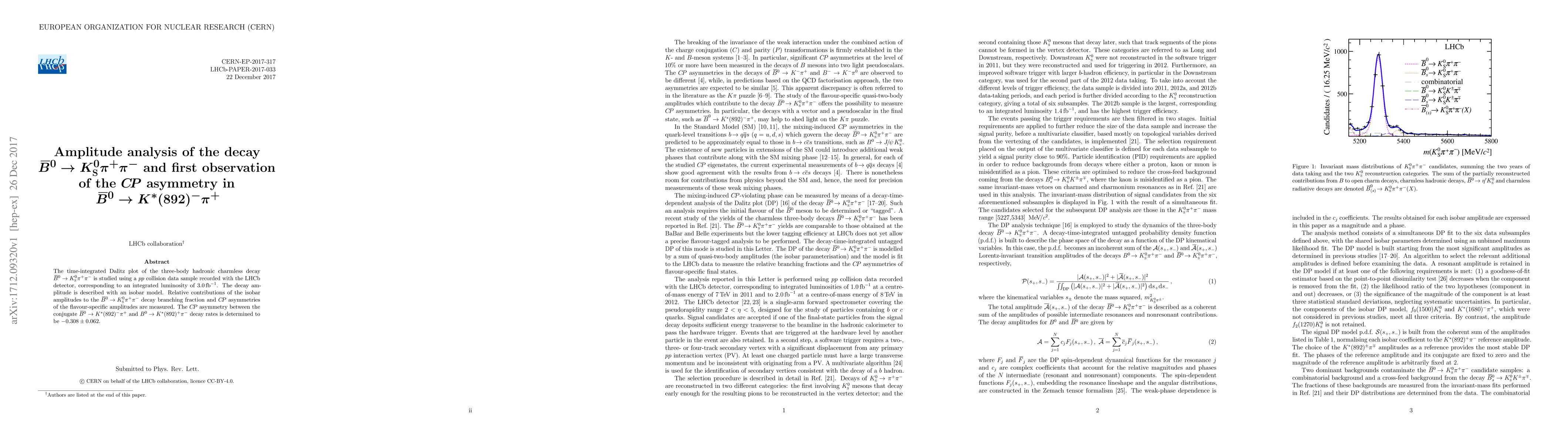 The time-integrated Dalitz plot of the three-body hadronic charmless decay ${{\overline{B}}^0 \to K_{\mathrm{\scriptscriptstyle S}}^0 \pi^+ \pi^-}$ is studied using a $pp$ collision data sample recorded with the LHCb detector, corresponding to an integrated luminosity of $3.0\;\mathrm{fb}^{-1}$. The decay amplitude is described with an isobar model. Relative contributions of the isobar amplitudes to the ${\overline{B}^0 \to K_{\mathrm{\scriptscriptstyle S}}^0 \pi^+ \pi^-}$ decay branching fraction and CP asymmetries of the flavour-specific amplitudes are measured. The CP asymmetry between the conjugate ${\overline{B}^0 \to K^{*}(892)^{-}\pi^+}$ and ${\overline{B}^0 \to K^{*}(892)^{+}\pi^-}$ decay rates is determined to be $-0.308 \pm 0.062$.