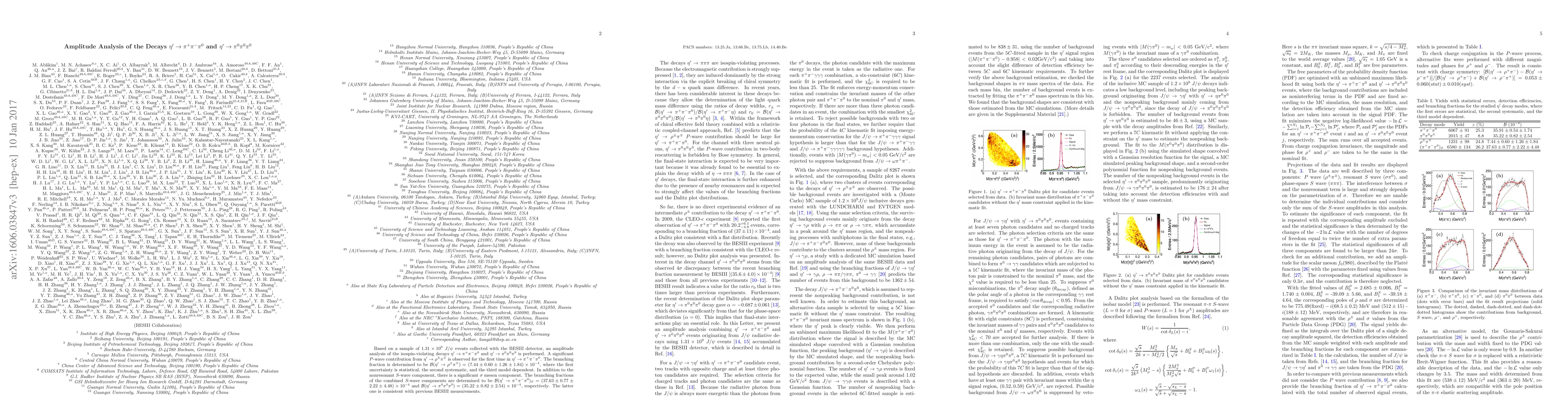 Based on a sample of $1.31 \times 10^9$ $J/\psi$ events collected with the BESIII detector, an amplitude analysis of the isospin-violating decays $\eta^\prime \rightarrow \pi^+\pi^-\pi^0$ and $\eta^\prime \rightarrow \pi^0\pi^0\pi^0$ is performed. A significant $P$-wave contribution from $\eta^\prime \rightarrow \rho^{\pm} \pi^{\mp}$ is observed for the first time in $\eta^\prime \rightarrow \pi^+\pi^-\pi^0$. The branching fraction is determined to be ${\mathcal B}(\eta^\prime \rightarrow \rho^{\pm}\pi^{\mp})=(7.44\pm0.60\pm1.26\pm1.84)\times 10^{-4}$, where the first uncertainty is statistical, the second systematic, and the third model dependent. In addition to the nonresonant $S$-wave component, there is a significant $\sigma$ meson component. The branching fractions of the combined $S$-wave components are determined to be ${\mathcal B}(\eta^\prime \rightarrow \pi^+\pi^-\pi^0)_S=(37.63\pm0.77\pm2.22\pm4.48)\times 10^{-4}$ and ${\mathcal B}(\eta^\prime \rightarrow \pi^0\pi^0\pi^0)=(35.22\pm0.82\pm2.54)\times 10^{-4}$, respectively. The latter one is consistent with previous BESIII measurements.