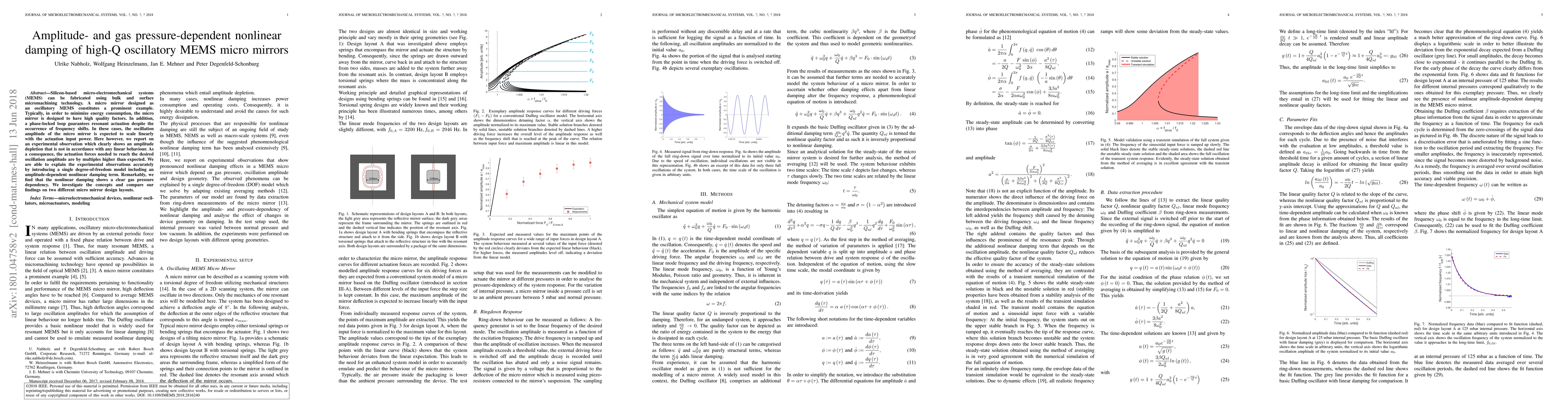 Silicon-based micro-electromechanical systems (MEMS) can be fabricated using bulk and surface micromachining technology. A micro mirror designed as an oscillatory MEMS constitutes a prominent example. Typically, in order to minimize energy consumption, the micro mirror is designed to have high quality factors. In addition, a phase-locked loop guarantees resonant actuation despite the occurrence of frequency shifts. In these cases, the oscillation amplitude of the micro mirror is expected to scale linearly with the actuation input power. Here, however, we report on an experimental observation which clearly shows an amplitude depletion that is not in accordance with any linear behaviour. As a consequence, the actuation forces needed to reach the desired oscillation amplitude are by multiples higher than expected. We are able to explain the experimental observations accurately by introducing a single degree-of-freedom model including an amplitude-dependent nonlinear damping term. Remarkably, we find that the nonlinear damping shows a clear gas pressure dependency. We investigate the concepts and compare our findings on two different micro mirror design layouts.