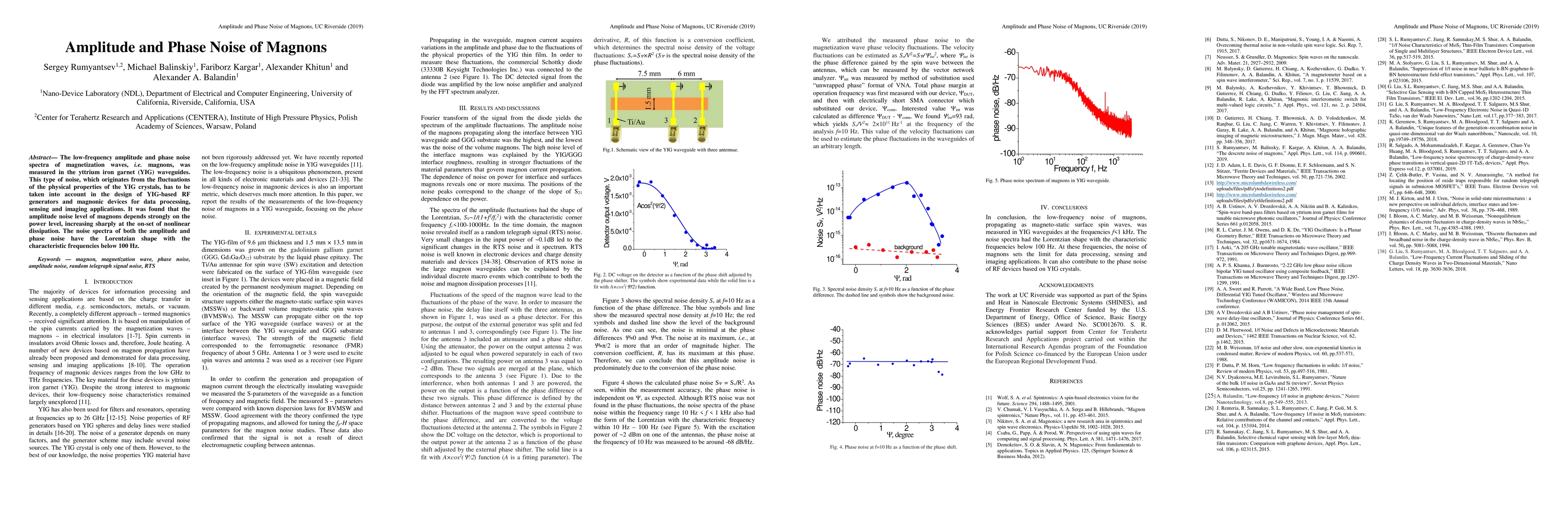 Researchers measured magnon noise in YIG waveguides, finding amplitude noise levels increase sharply at nonlinear dissipation onset, with characteristic frequencies below 100 Hz.