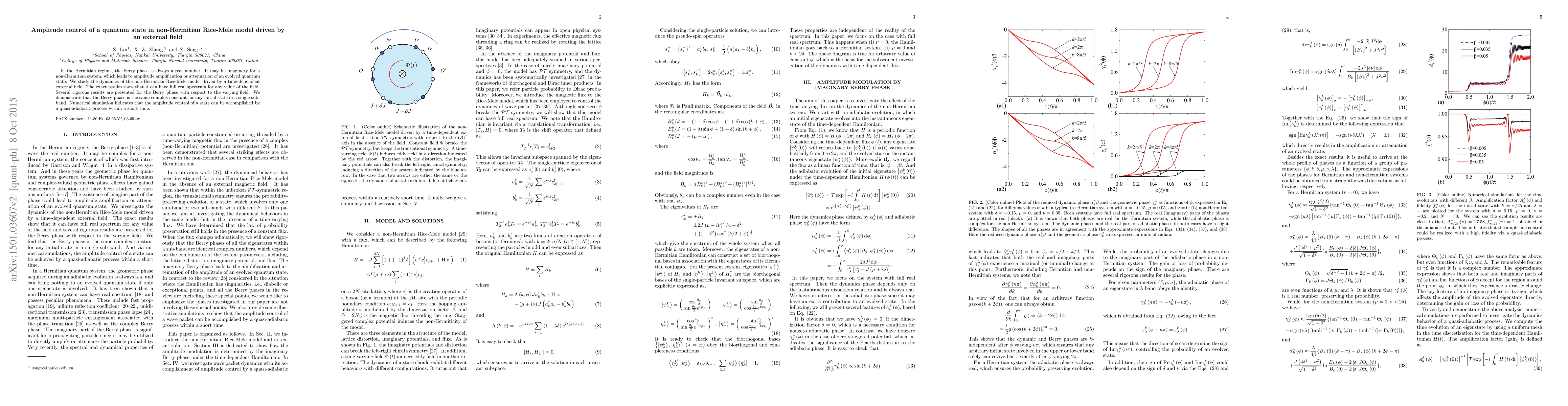 This paper studies the dynamics of a non-Hermitian Rice-Mele model driven by an external field, finding that it can control the amplitude of a quantum state through quasi-adiabatic processes.