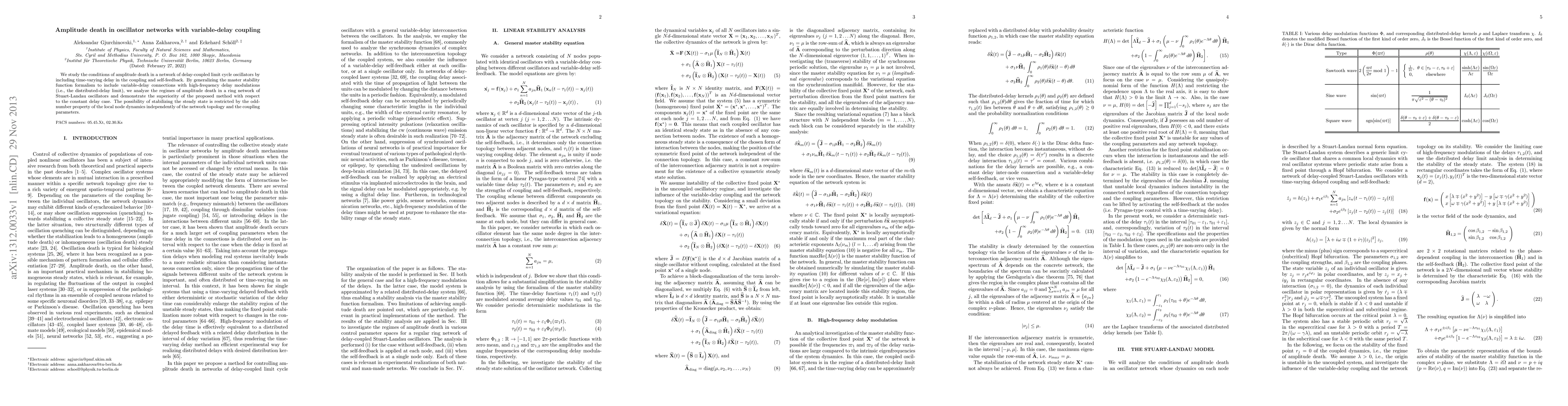 This paper investigates amplitude death in networks of oscillators with variable-delay coupling, employing a generalized master stability function to analyze the distributed-delay limit. It demonstrates that the method outperforms constant delay approaches and highlights the role of the odd-number property of local dynamics in stabilizing the steady state.