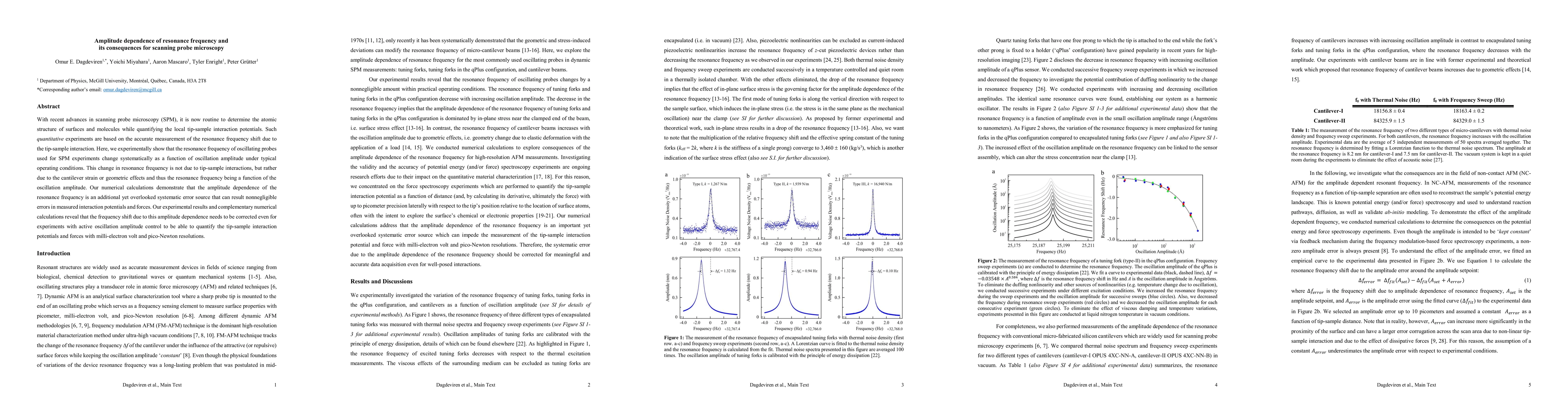 This research reveals that the resonance frequency of probes in scanning probe microscopy (SPM) varies with oscillation amplitude, caused by cantilever strain rather than tip-sample interactions. Numerical calculations and experiments show this amplitude dependence introduces significant errors in measuring interaction potentials and forces, necessitating correction for accurate SPM results.