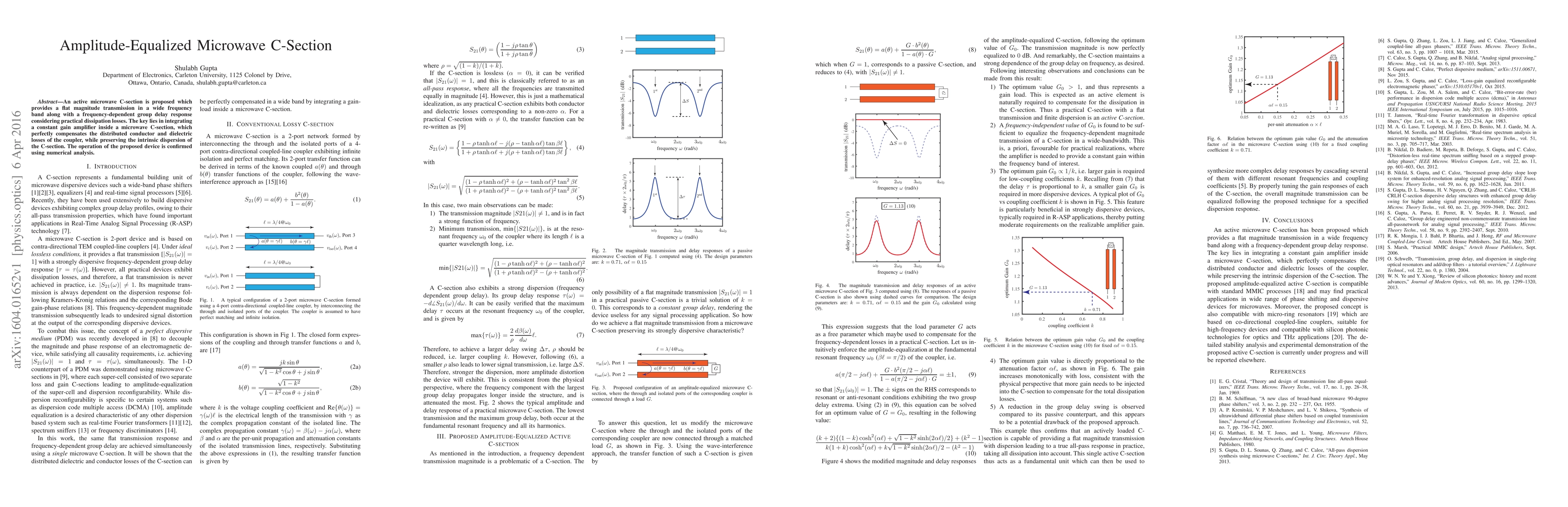 A new active microwave C-section design reduces transmission losses while preserving frequency-dependent group delay, enabling flat magnitude response over a wide frequency band.
