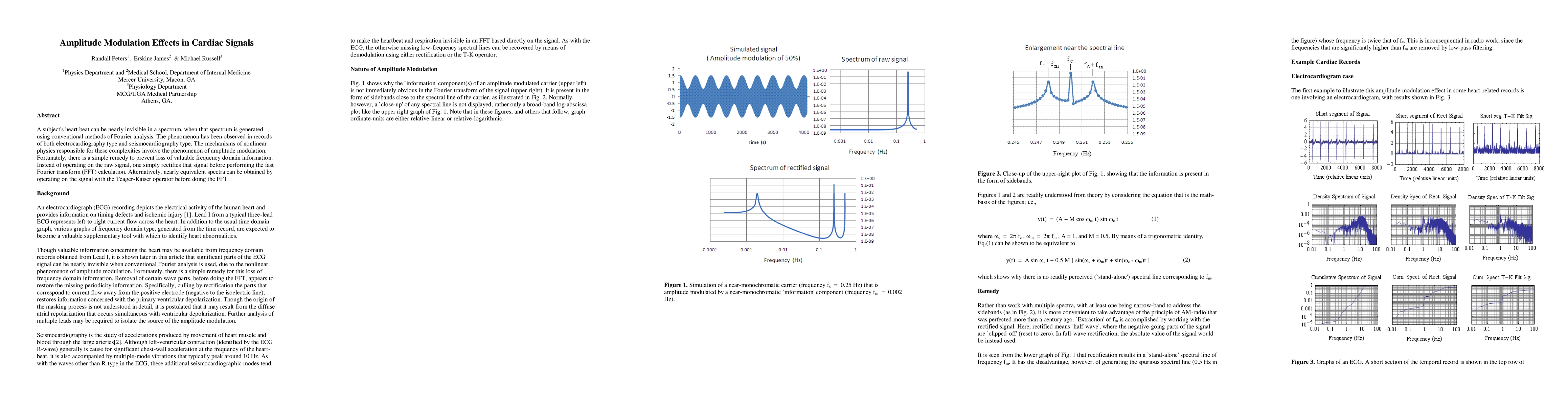 Researchers found that conventional Fourier analysis can obscure the amplitude modulation in cardiac signals, but rectifying the signal before analysis improves visibility of valuable frequency domain information. Alternative methods, such as using the Teager-Kaiser operator, can also produce nearly equivalent spectra.