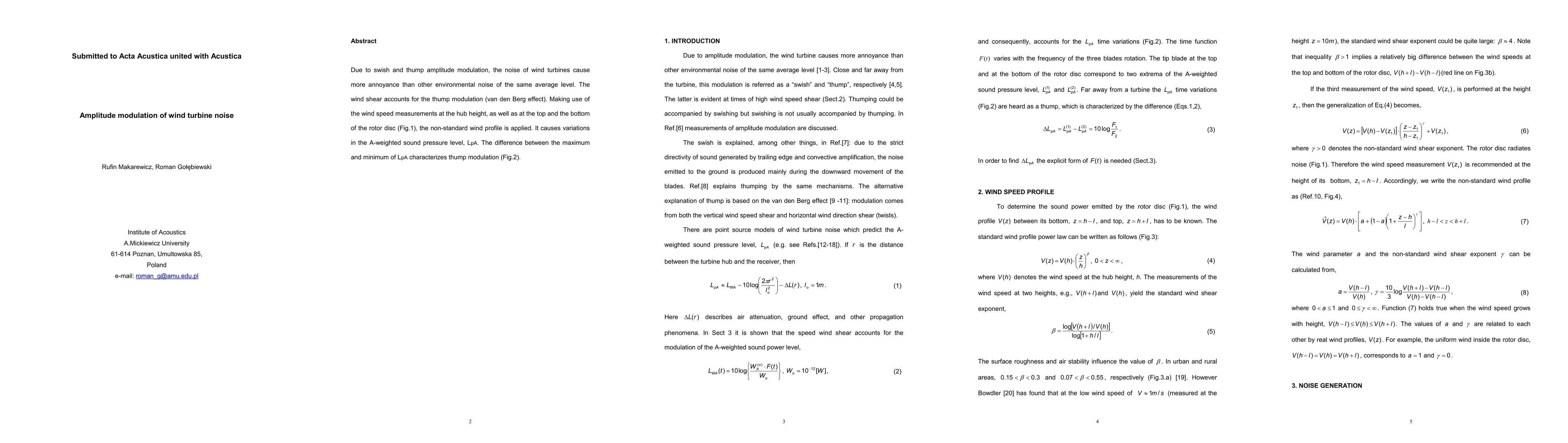 Due to swish and thump amplitude modulation, the noise of wind turbines cause more annoyance than other environmental noise of the same average level. The wind shear accounts for the thump modulation (van den Berg effect). Making use of the wind speed measurements at the hub height, as well as at the top and the bottom of the rotor disc (Fig.1), the non-standard wind profile is applied. It causes variations in the A-weighted sound pressure level, LpA. The difference between the maximum and minimum of LpA characterizes thump modulation (Fig.2).