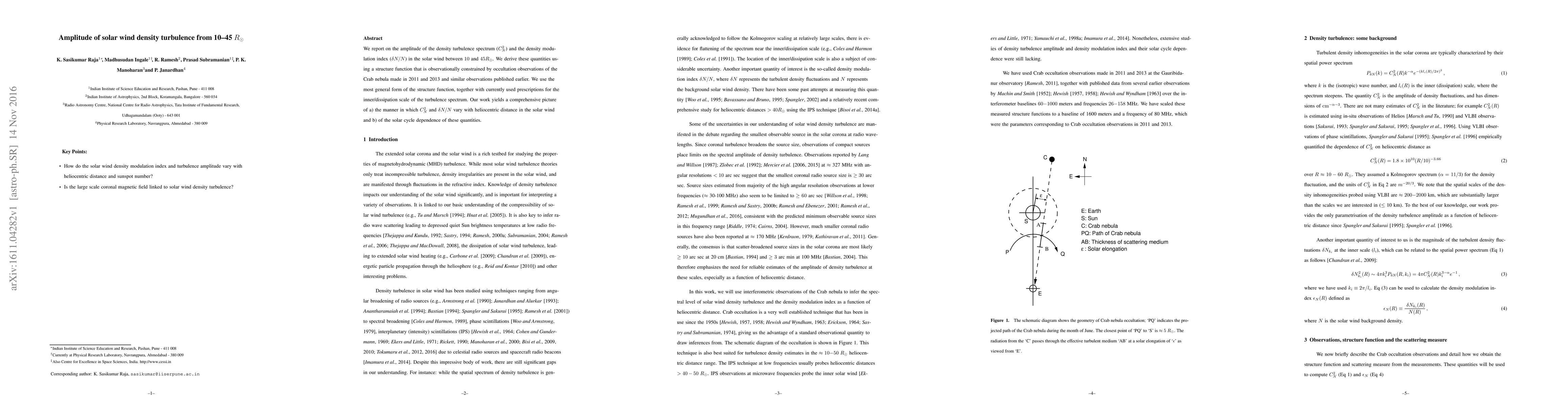 This paper investigates the amplitude of solar wind density turbulence between 10 and 45 solar radii using observationally constrained structure functions. It provides insights into how density turbulence and modulation vary with distance and their solar cycle dependence.