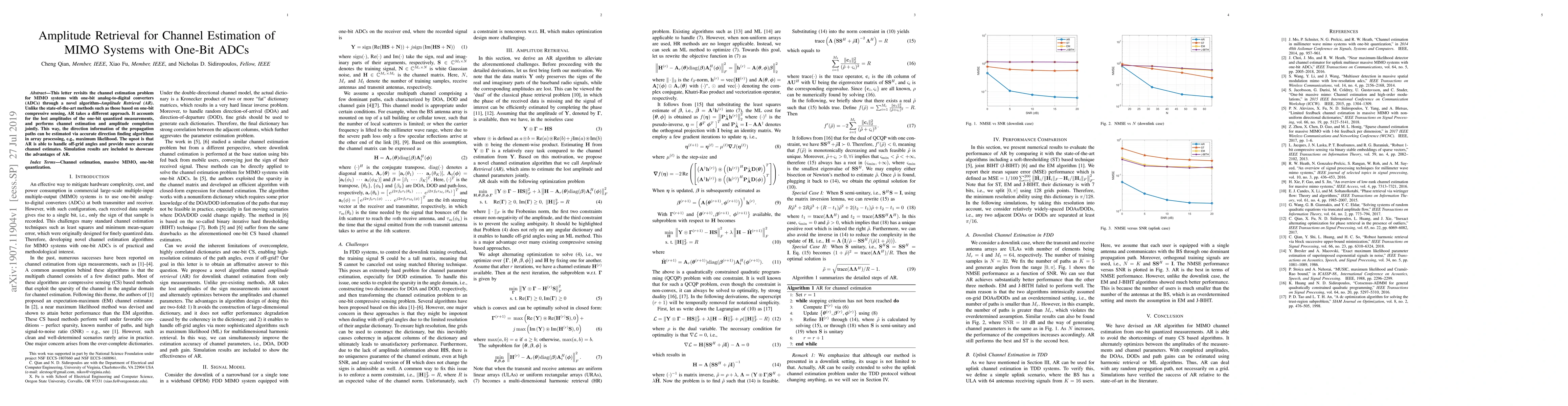 This paper proposes a novel Amplitude Retrieval (AR) algorithm for channel estimation in MIMO systems using one-bit ADCs, which jointly estimates channel and completes lost amplitude information, providing more accurate direction information and handling off-grid angles compared to existing methods. Simulation results demonstrate the superior performance of AR.