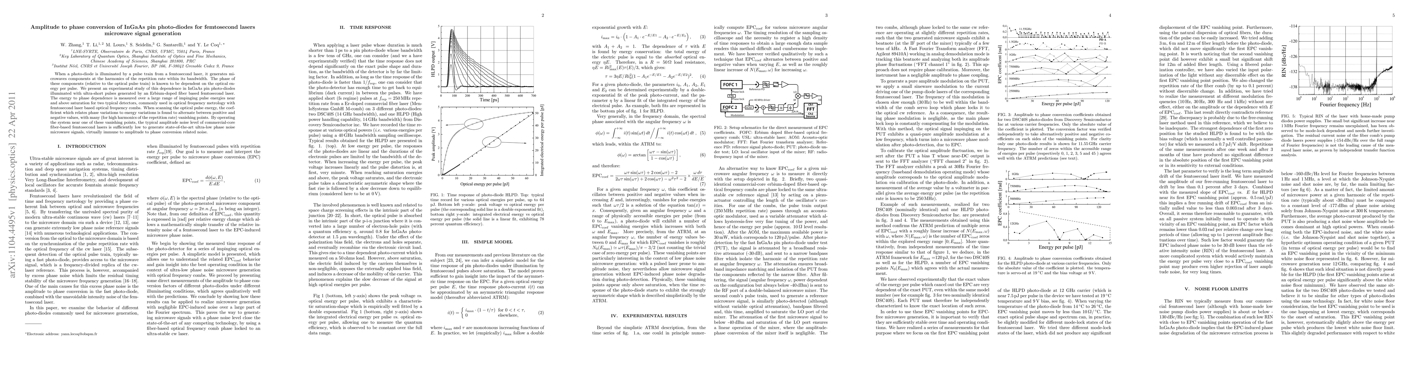 This study investigates the phase-to-amplitude conversion in InGaAs pin photo-diodes under femtosecond laser illumination, revealing alternating positive and negative energy-to-phase conversion coefficients. Operating near vanishing points of these coefficients enables ultra-low phase noise microwave signal generation.