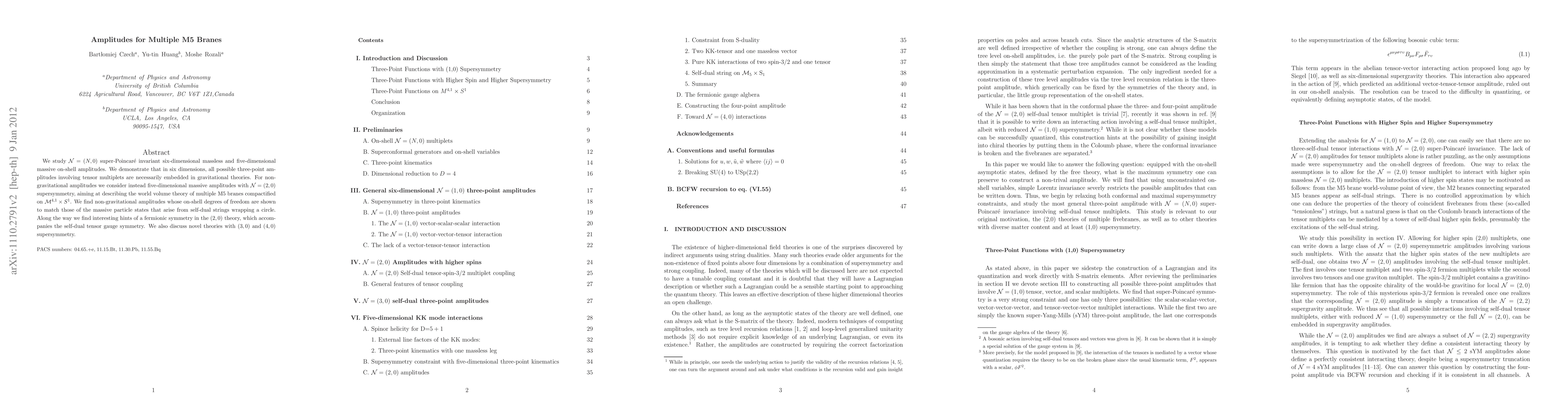 We study N=(m,0) super-Poincare invariant six-dimensional massless and five-dimensional massive on-shell amplitudes. We demonstrate that in six dimensions, all possible three-point amplitudes involving tensor multiplets are necessarily embedded in gravitational theories. For non-gravitational amplitudes we consider instead five-dimensional massive amplitudes with N=(2,0) supersymmetry, aiming at describing the world volume theory of multiple M5 branes compactified on M^{4,1}x S^1. We find non-gravitational amplitudes whose on-shell degrees of freedom are shown to match those of the massive particle states that arise from self-dual strings wrapping a circle. Along the way we find interesting hints of a fermionic symmetry in the (2,0) theory, which accompanies the self-dual tensor gauge symmetry. We also discuss novel theories with (3,0) and (4,0) supersymmetry.