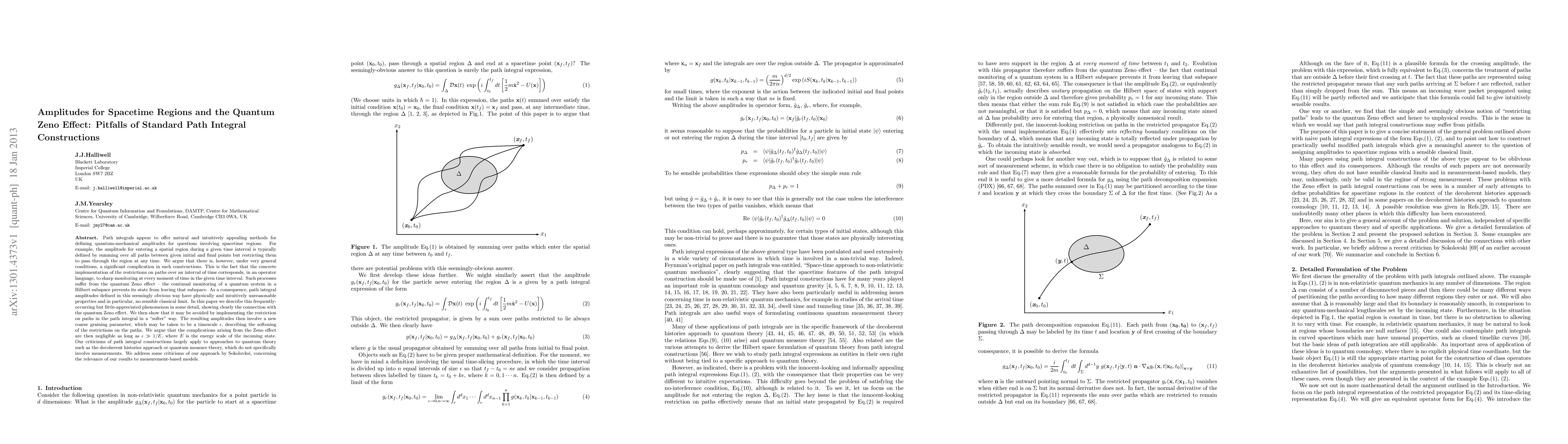 We argue that under very general conditions, there is a significant complication in amplitudes for spacetimes regions constructed from path integrals. This is the fact that the concrete implementation of the restrictions on paths over an interval of time corresponds, in an operator language, to sharp monitoring at every moment of time in the given time interval. Such processes suffer from the quantum Zeno effect -- the continual monitoring of a quantum system in a Hilbert subspace prevents its state from leaving that subspace. As a consequence, path integral amplitudes defined in this seemingly obvious way have physically and intuitively unreasonable properties and in particular, no sensible classical limit. In this paper we describe this frequently-occurring but little-appreciated phenomenon in some detail, showing clearly the connection with the quantum Zeno effect. We then show that it may be avoided by implementing the restriction on paths in the path integral in a "softer" way. The resulting amplitudes then involve a new coarse graining parameter, which may be taken to be a timescale $\eps$, describing the softening of the restrictions on the paths. We argue that the complications arising from the Zeno effect are then negligible as long as $\eps >> 1/ E$, where $E$ is the energy scale of the incoming state. Our criticisms of path integral constructions largely apply to approaches to quantum theory such as the decoherent histories approach or quantum measure theory, which do not specifically involve measurements. We address some criticisms of our approach by Sokolovksi, concerning the relevance of our results to measurement-based models.