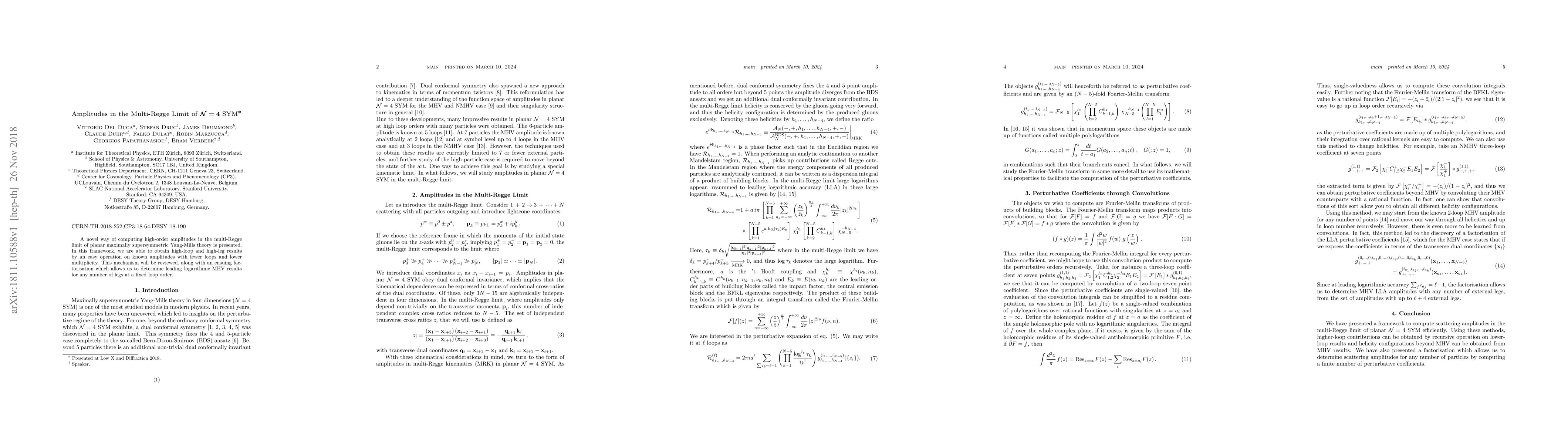 A novel way of computing high-order amplitudes in the multi-Regge limit of planar maximally supersymmetric Yang-Mills theory is presented. In this framework, we are able to obtain high-loop and high-leg results by an easy operation on known amplitudes with fewer loops and lower multiplicity. This mechanism will be reviewed, along with an ensuing factorisation which allows us to determine leading logarithmic MHV results for any number of legs at a fixed loop order.