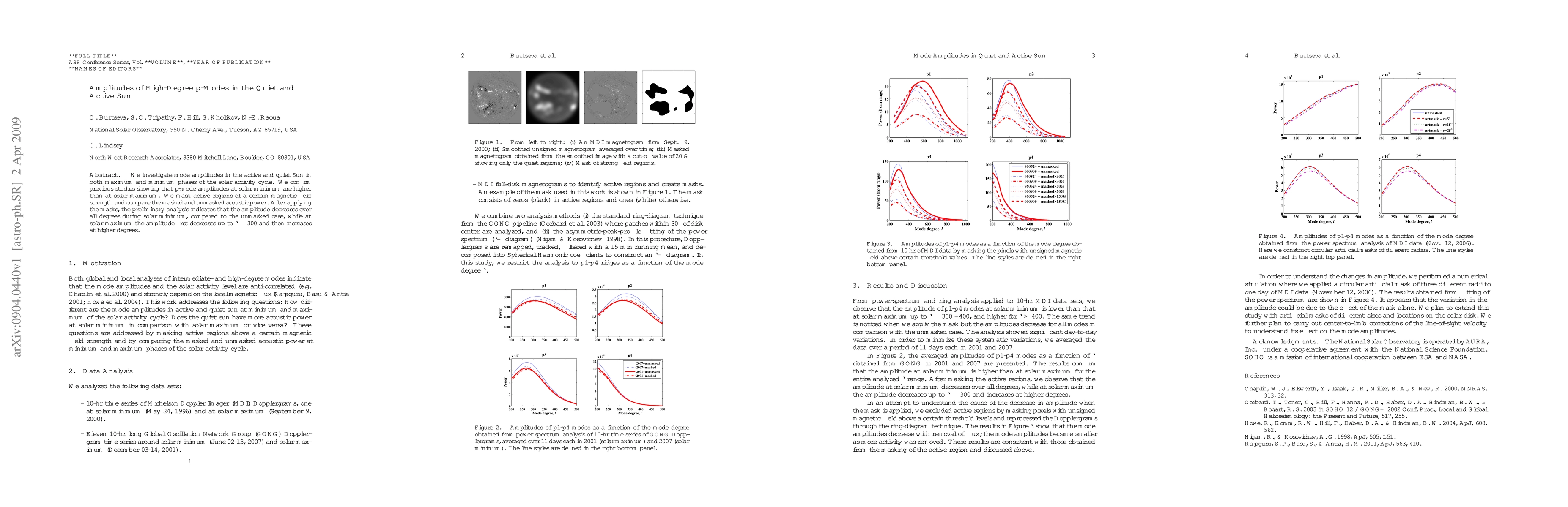 We investigate mode amplitudes in the active and quiet Sun in both maximum and minimum phases of the solar activity cycle. We confirm previous studies showing that p-mode amplitudes at solar minimum are higher than at solar maximum. We mask active regions of a certain magnetic field strength and compare the masked and unmasked acoustic power. After applying the masks, the preliminary analysis indicates that the amplitude decreases over all degrees during solar minimum, compared to the unmasked case, while at solar maximum the amplitude first decreases up to l ~ 300 and then increases at higher degrees.