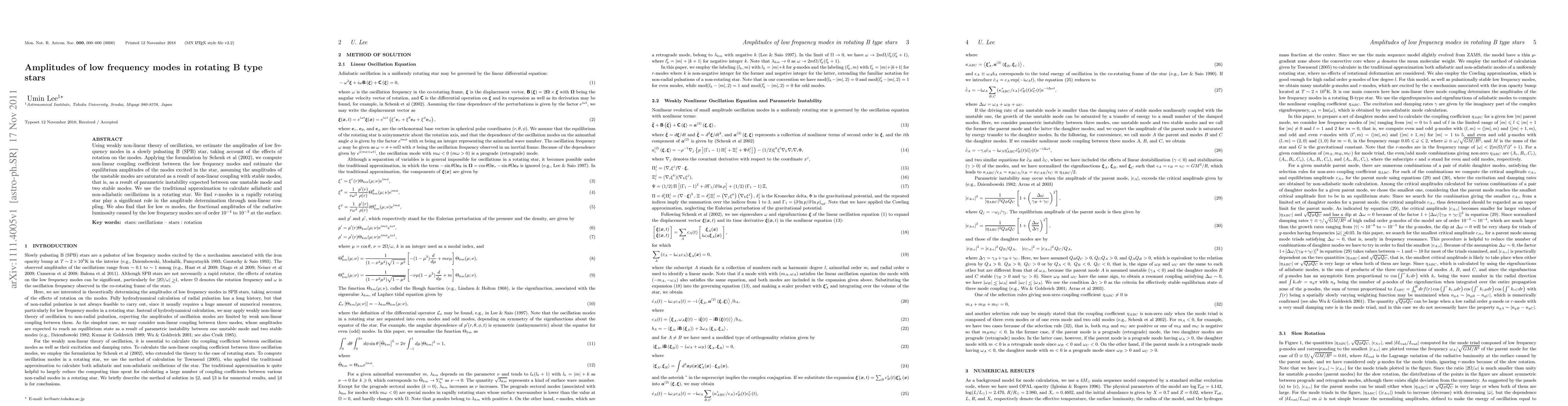 This study uses weakly non-linear theory to estimate the amplitudes of low frequency modes in rotating B-type stars, finding that $r$-modes significantly impact mode amplitude through non-linear coupling, with fractional surface luminosity changes ranging from 10^-4 to 10^-3.
