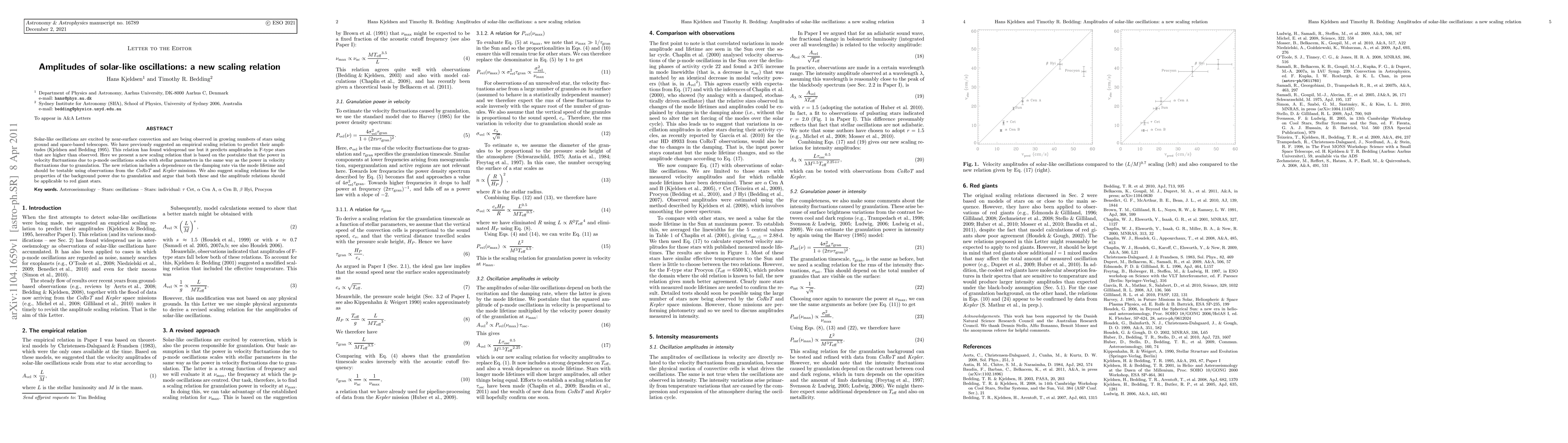 This paper introduces a new scaling relation to predict the amplitudes of solar-like oscillations, addressing discrepancies in previous models for F-type stars. The new model correlates oscillation power with stellar parameters and granulation, aiming for better predictions across various star types, including red giants.