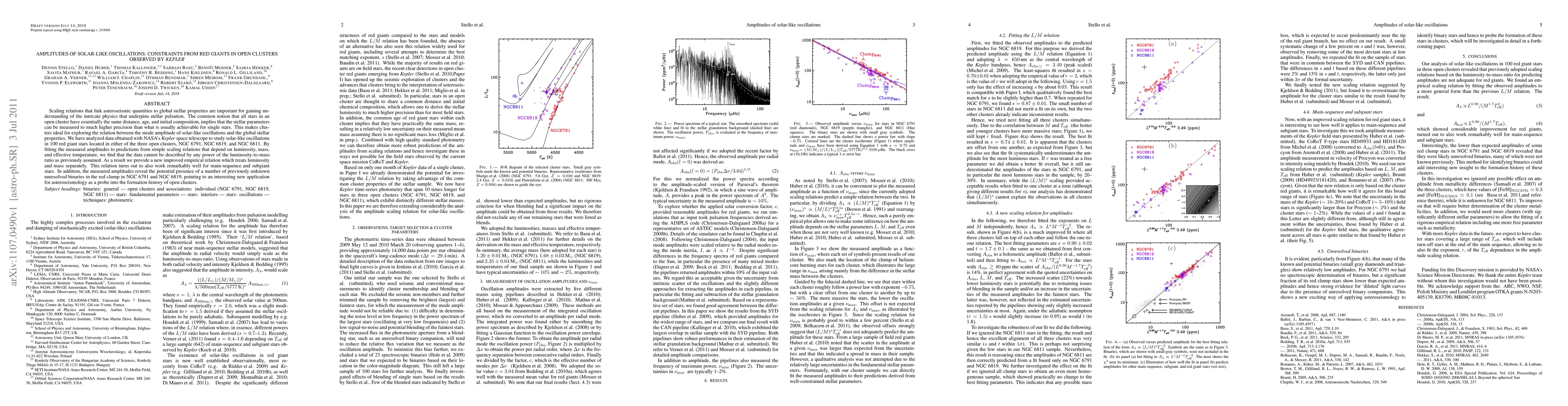 Astronomers analyzed Kepler data from 100 red giant stars in three open clusters to study solar-like oscillations, finding a new empirical relation that predicts amplitude based on luminosity and mass separately.