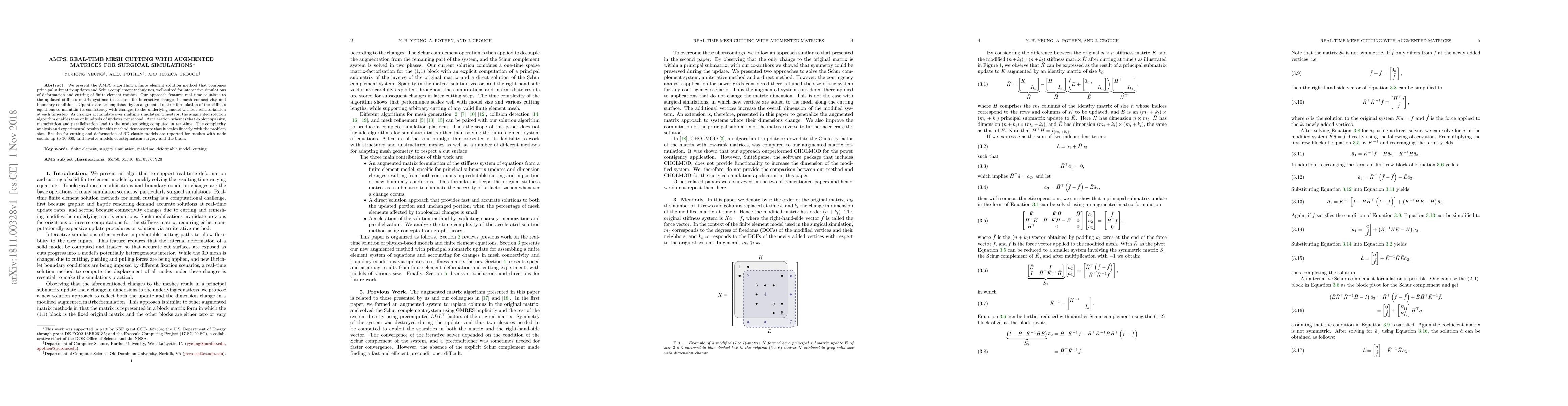 The AMPS algorithm enables real-time mesh cutting in surgical simulations with tens of updates per second, scaling linearly with problem size for complex 3D models.