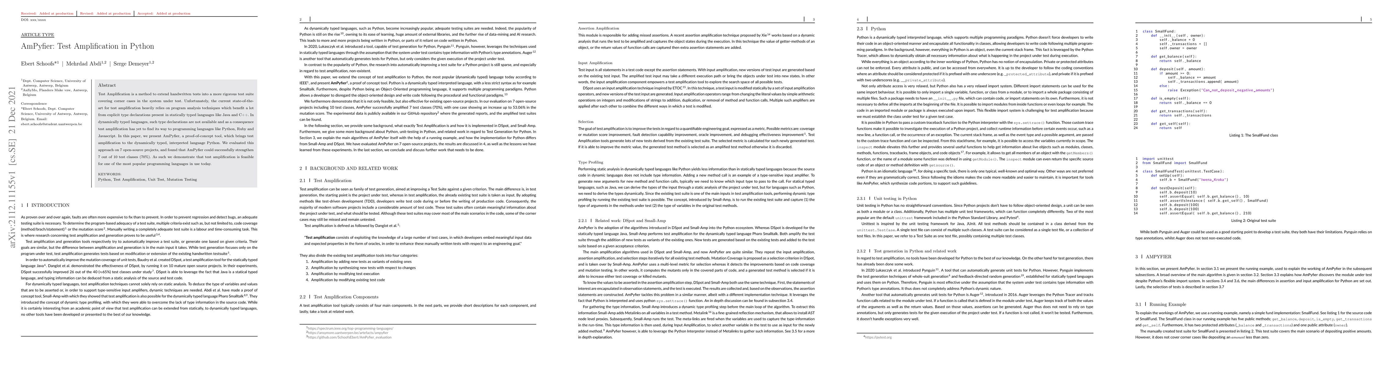 AmPyfier introduces a proof-of-concept tool to extend handwritten tests in Python by amplifying them into a more rigorous test suite. The evaluation on 7 open-source projects shows that AmPyfier successfully strengthens 70% of test classes, demonstrating the feasibility of test amplification in dynamically typed languages.