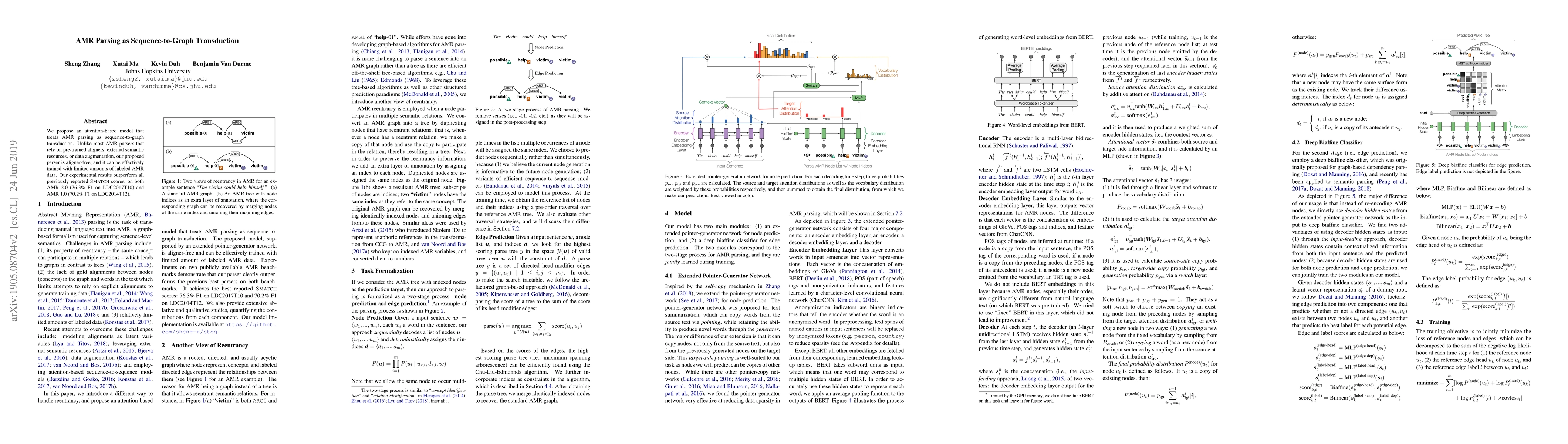 This research introduces an attention-based model for AMR parsing, framing it as sequence-to-graph transduction. Unlike traditional methods, this parser is aligner-free and achieves superior performance with limited labeled data, outperforming previous models on AMR datasets.