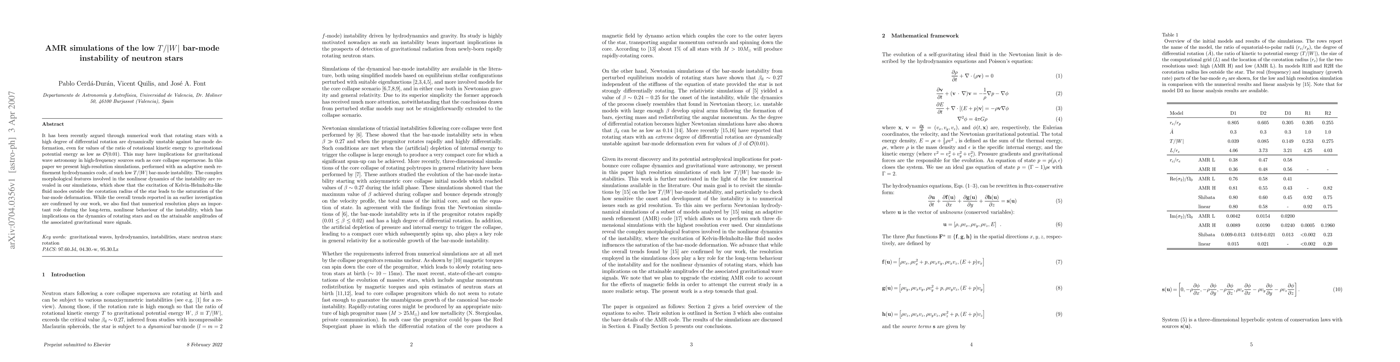 It has been recently argued through numerical work that rotating stars with a high degree of differential rotation are dynamically unstable against bar-mode deformation, even for values of the ratio of rotational kinetic energy to gravitational potential energy as low as O(0.01). This may have implications for gravitational wave astronomy in high-frequency sources such as core collapse supernovae. In this paper we present high-resolution simulations, performed with an adaptive mesh refinement hydrodynamics code, of such low T/|W| bar-mode instability. The complex morphological features involved in the nonlinear dynamics of the instability are revealed in our simulations, which show that the excitation of Kelvin-Helmholtz-like fluid modes outside the corotation radius of the star leads to the saturation of the bar-mode deformation. While the overall trends reported in an earlier investigation are confirmed by our work, we also find that numerical resolution plays an important role during the long-term, nonlinear behaviour of the instability, which has implications on the dynamics of rotating stars and on the attainable amplitudes of the associated gravitational wave signals.