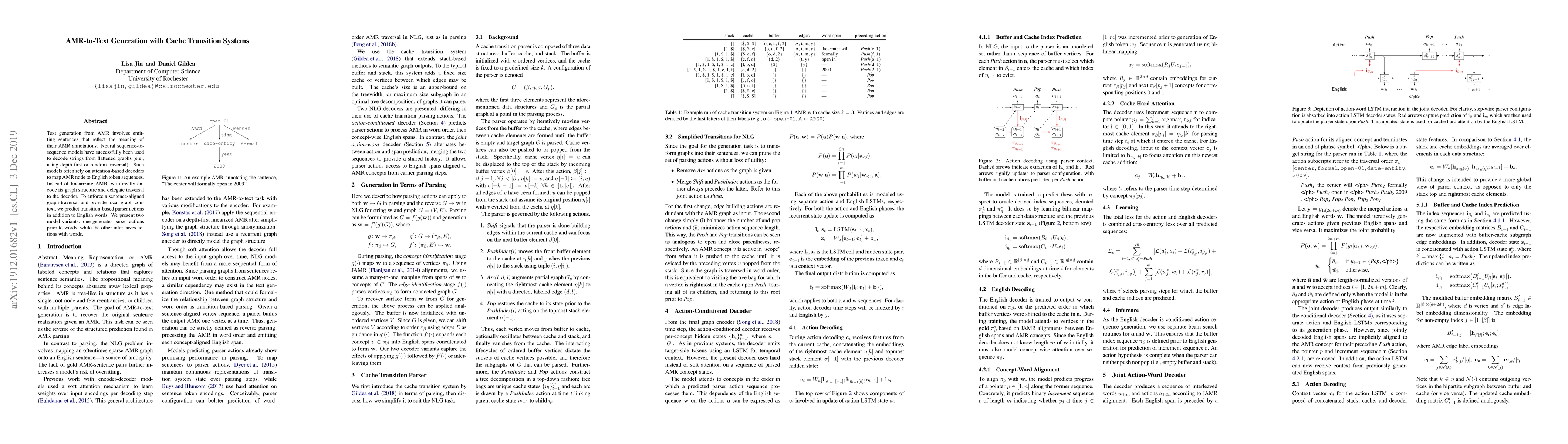 This paper proposes neural models for AMR-to-text generation that encode AMR's graph structure directly and leverage transition-based parser actions to guide traversal, generating sentences that reflect AMR annotations more accurately. Two model variants are introduced: one that predicts parser actions before words and another that interleaves actions with word generation.