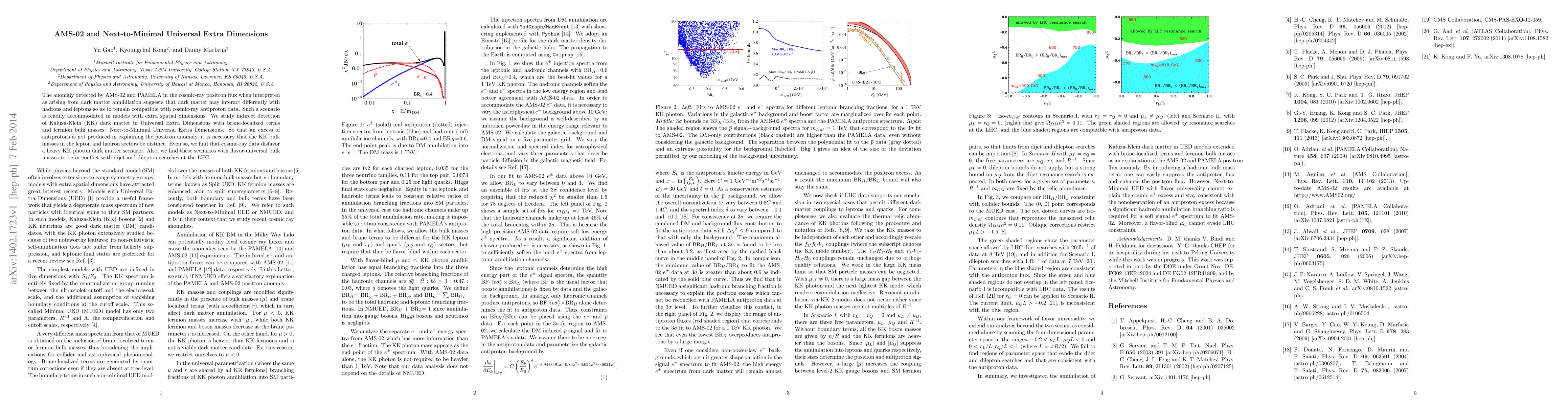 The AMS-02 and PAMELA detection of a cosmic-ray positron anomaly hints at dark matter annihilation, suggesting different interactions with hadrons and leptons. In Next-to-Minimal Universal Extra Dimensions, distinct Kaluza-Klein bulk masses for leptons and hadrons are required to avoid overproducing antiprotons, but such scenarios face challenges from LHC searches.