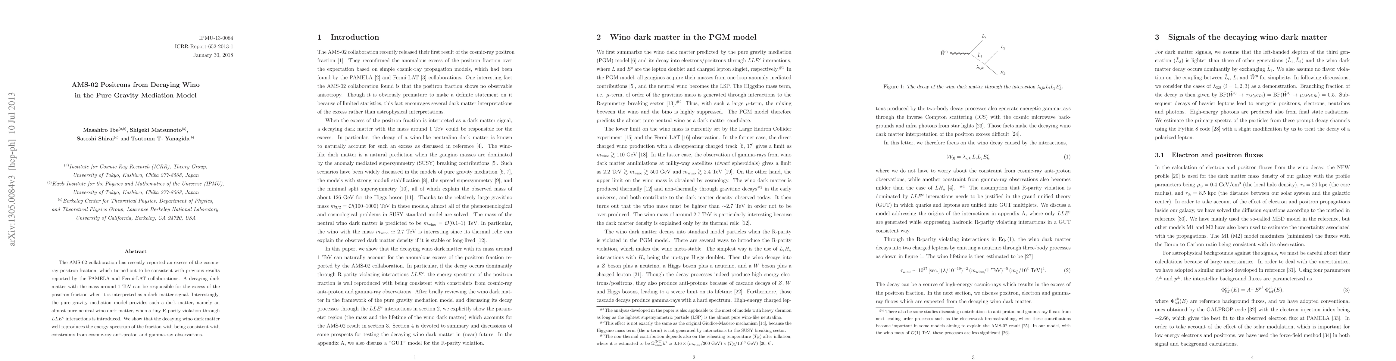 The AMS-02 collaboration has recently reported an excess of the cosmic-ray positron fraction, which turned out to be consistent with previous results reported by the PAMELA and Fermi-LAT collaborations. A decaying dark matter with the mass around 1 TeV can be responsible for the excess of the positron fraction when it is interpreted as a dark matter signal. Interestingly, the pure gravity mediation model provides such a dark matter, namely an almost pure neutral wino dark matter, when a tiny R-parity violation through $LLE^c$ interactions is introduced. We show that the decaying wino dark matter well reproduces the energy spectrum of the fraction with being consistent with constraints from cosmic-ray anti-proton and gamma-ray observations.