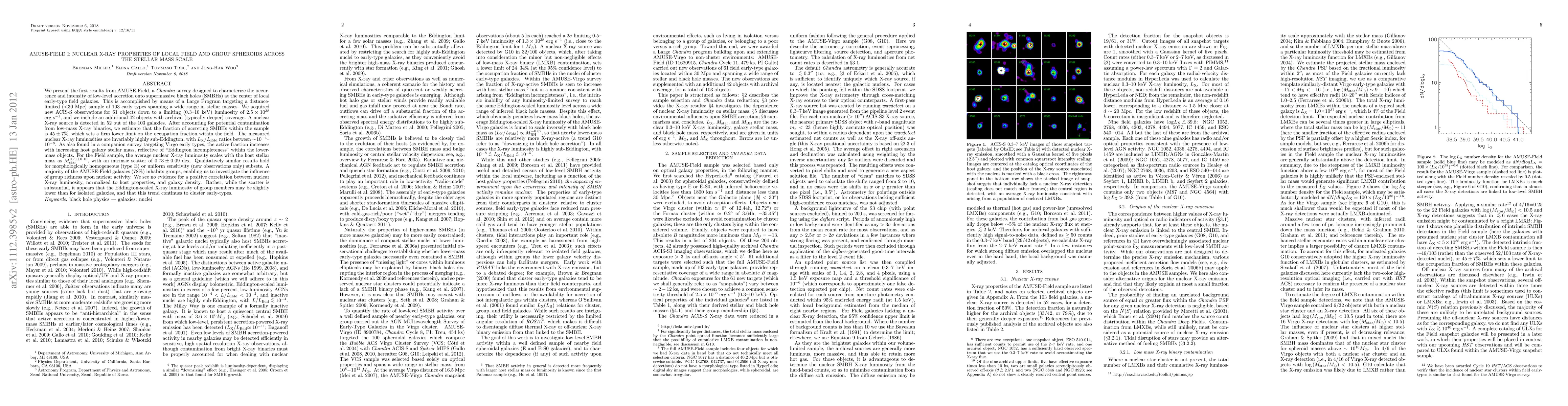 The AMUSE-Field survey detects nuclear X-ray sources in 45% of local early-type galaxies, with accretion onto supermassive black holes being more prevalent in more massive galaxies. There is no clear correlation between nuclear X-ray luminosity and galaxy density, suggesting that group richness may slightly suppress X-ray activity compared to isolated galaxies.