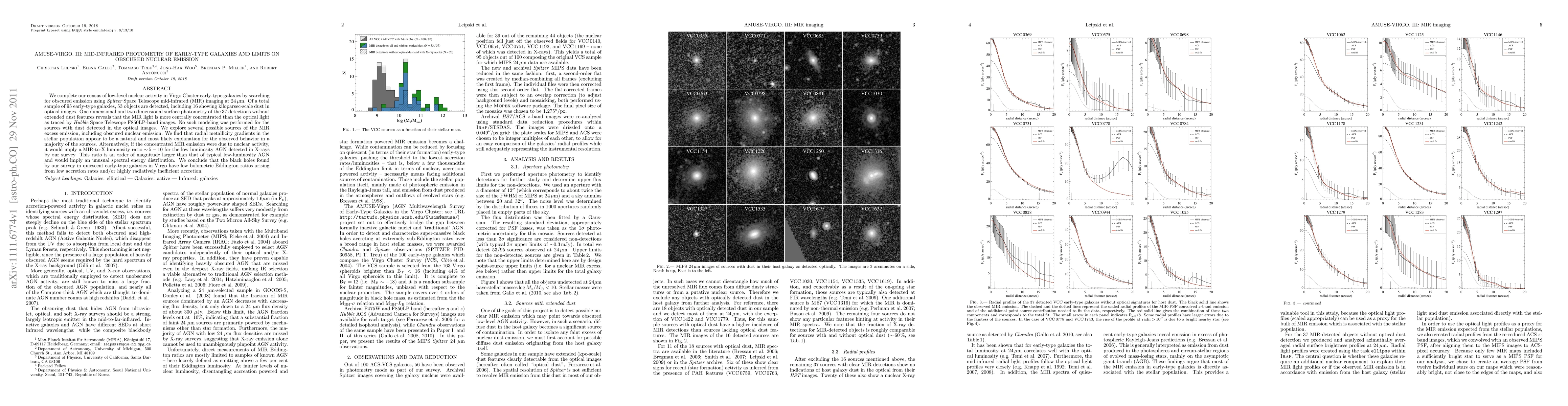 This paper uses Spitzer Space Telescope mid-infrared imaging to investigate low-level nuclear activity in early-type galaxies in the Virgo Cluster, finding that the mid-infrared light is more centrally concentrated than the optical light. The study suggests that radial metallicity gradients in the stellar population are the most likely explanation for the observed mid-infrared excess, rather than obscured nuclear emission.