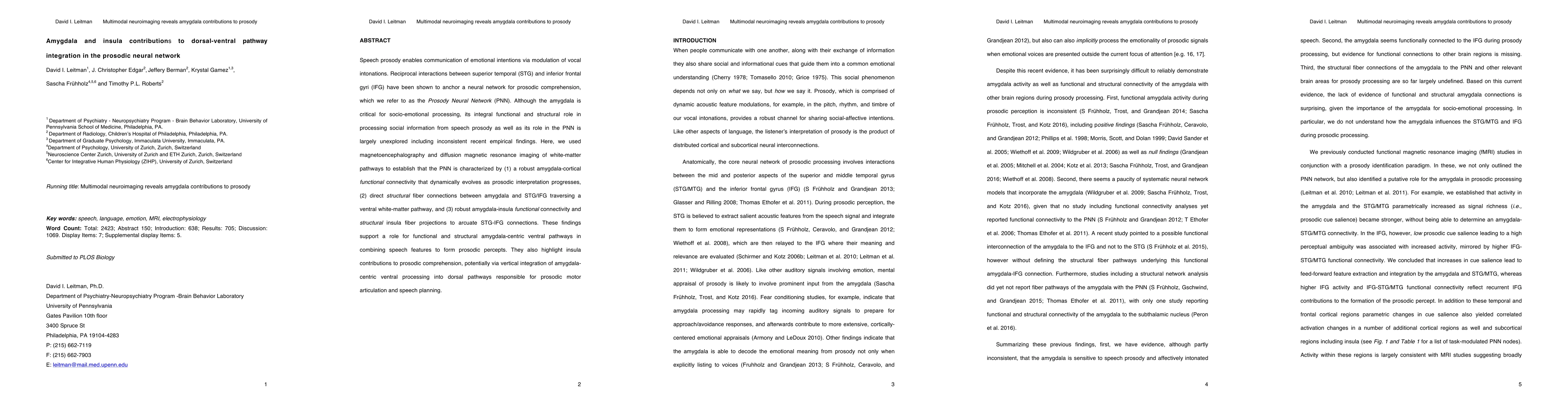 This research highlights the amygdala's role in processing social information from speech prosody and its integration within the PNN, emphasizing the importance of limbic contributions to vocal communication.