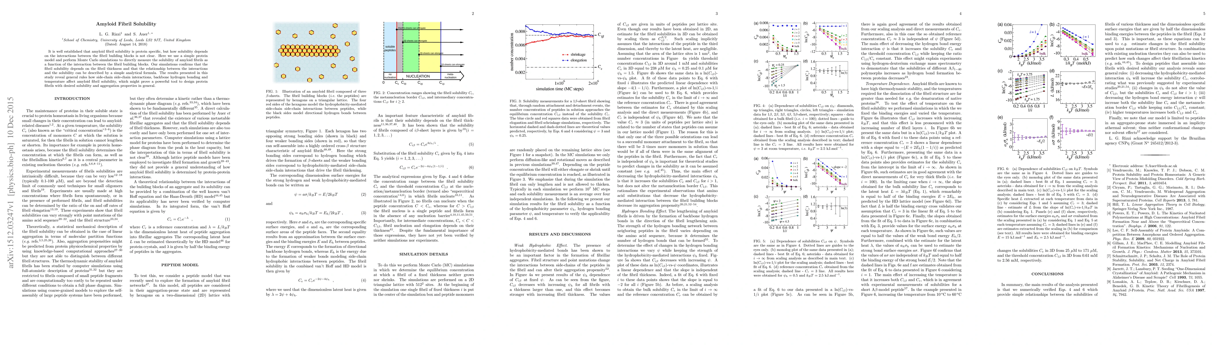 This study uses Monte Carlo simulations to determine how amyloid fibril solubility varies with interactions between fibril components, revealing that solubility depends on fibril thickness and can be described by an analytical formula. The findings provide general rules for how side-chain interactions, hydrogen bonding, and temperature influence fibril solubility, potentially aiding in designing protein fibrils with specific properties.