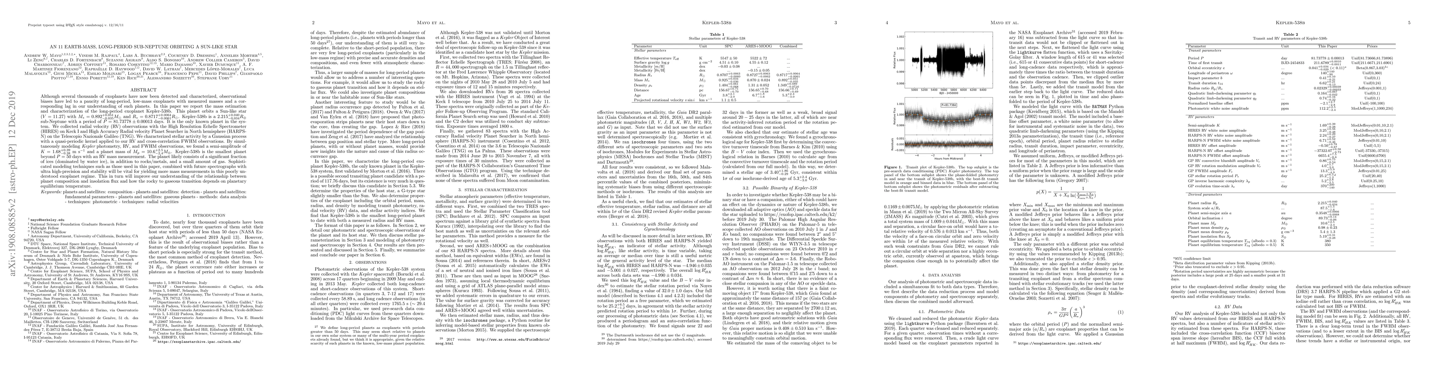 This research identifies Kepler-538b, a 10.6 Earth-mass sub-Neptune with a 81.7-day orbit around a Sun-like star, as the smallest known planet beyond 50 days' period with a measured mass. The study utilizes radial velocity measurements from HIRES and HARPS-N, combined with Gaussian process modeling to account for stellar activity, revealing the planet's likely composition of water ice, rocks, and a small amount of gas.