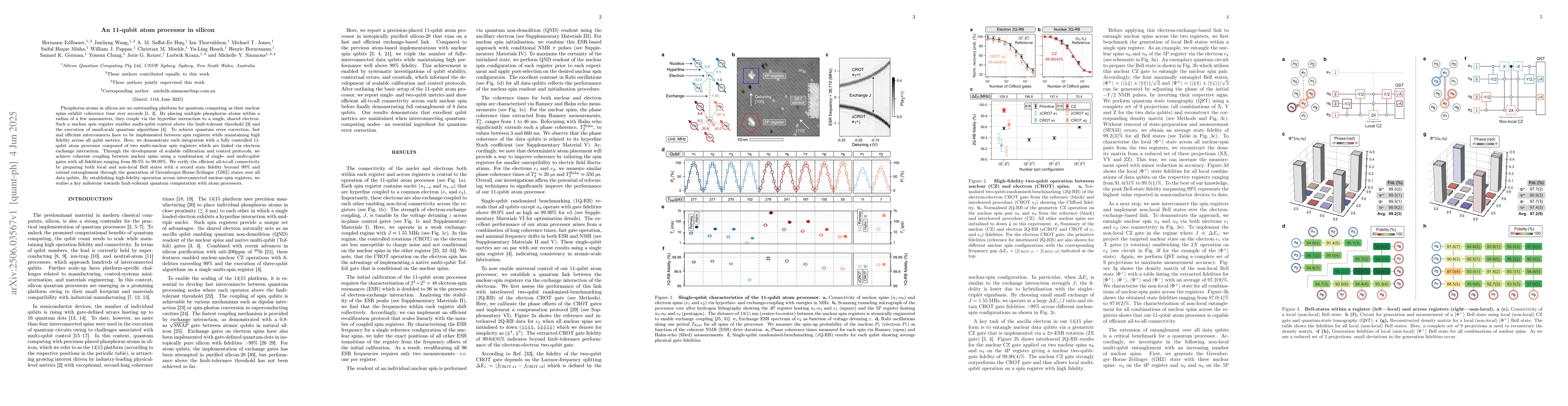 Researchers create an 11-qubit atom processor in silicon, achieving coherent coupling between nuclear spins with high fidelity (>99.5%) for multi-qubit control and small-scale quantum algorithms.