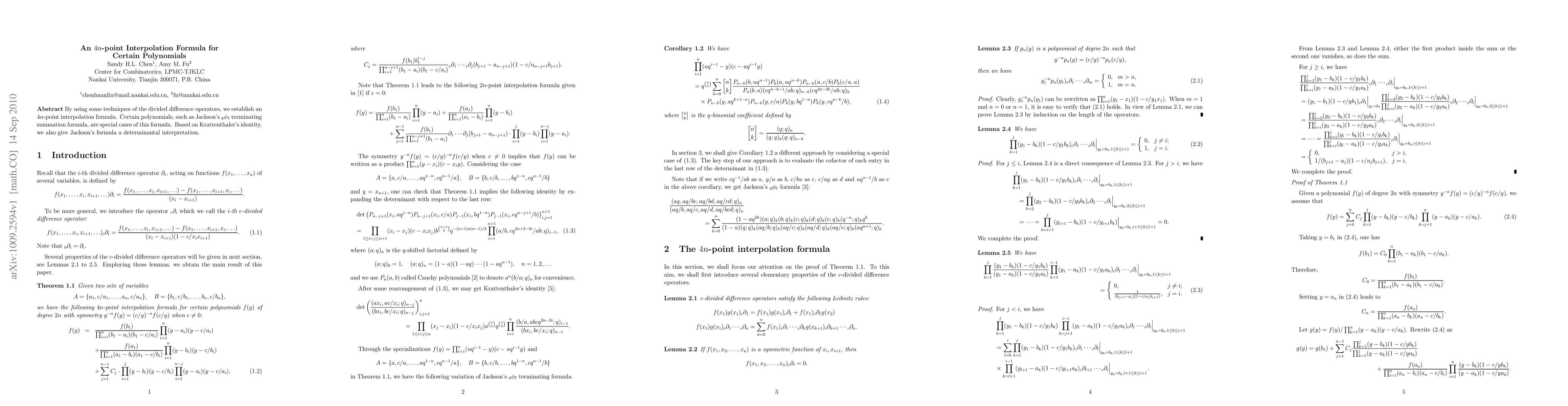 By using some techniques of the divided difference operators, we establish an 4n-point interpolation formula. Certain polynomials, such as Jackson's _8\phi_7 terminating summation formula, are special cases of this formula. Based on Krattenthaler's identity, we also give Jackson's formula a determinantal interpretation.