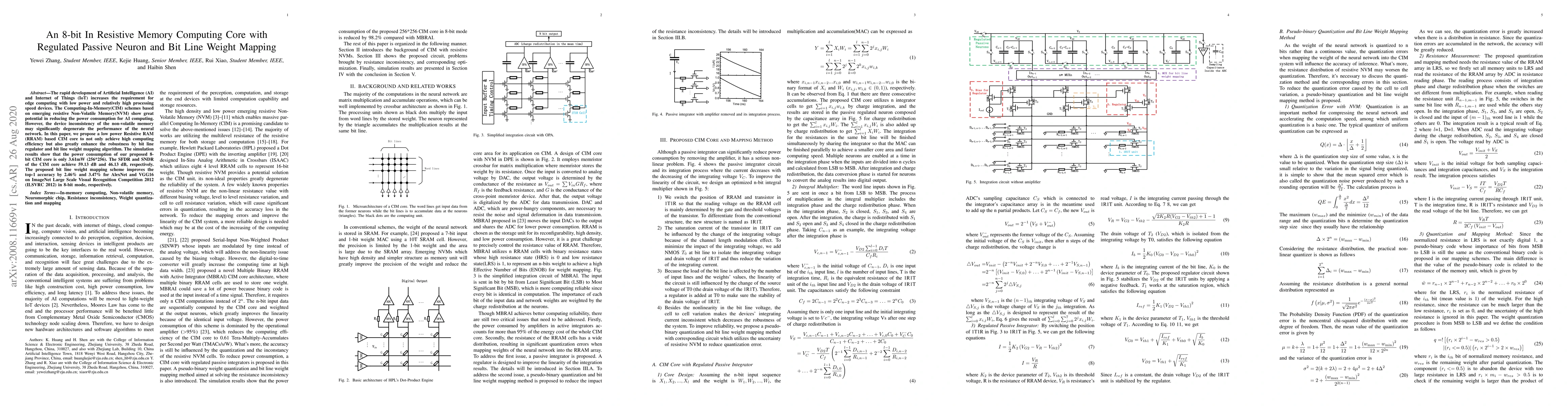 Researchers propose a low-power resistive memory computing core with improved robustness using bit line regulators and weight mapping algorithms, achieving high performance for AI computing applications.