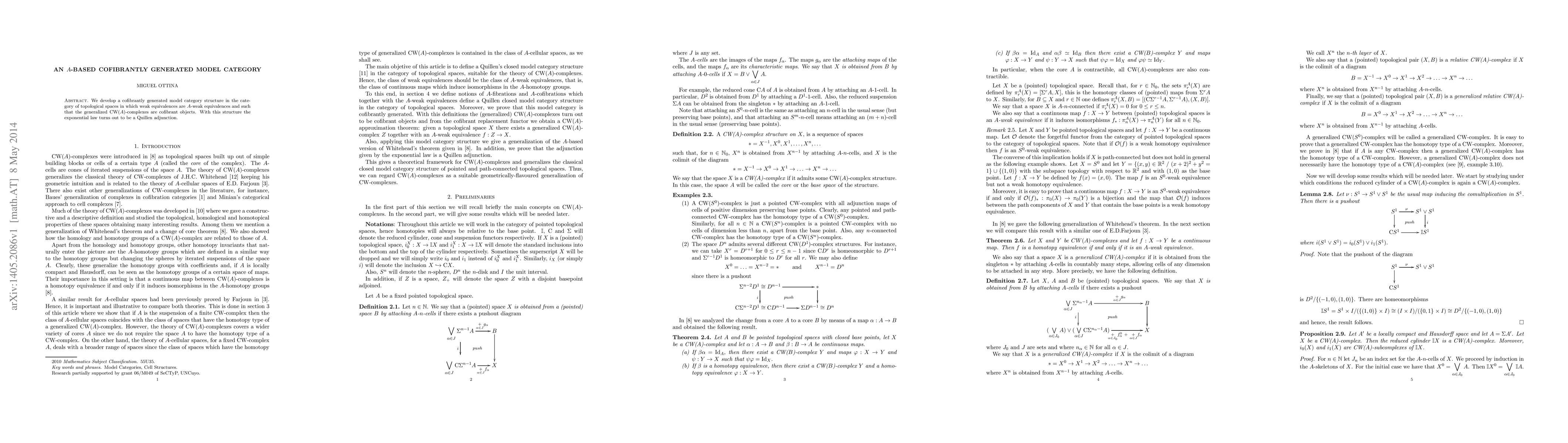 This paper establishes a cofibrantly generated model category for topological spaces where weak equivalences are defined as A-weak equivalences, and generalized CW(A)-complexes serve as cofibrant objects. The resulting structure allows the exponential law to be expressed as a Quillen adjunction.