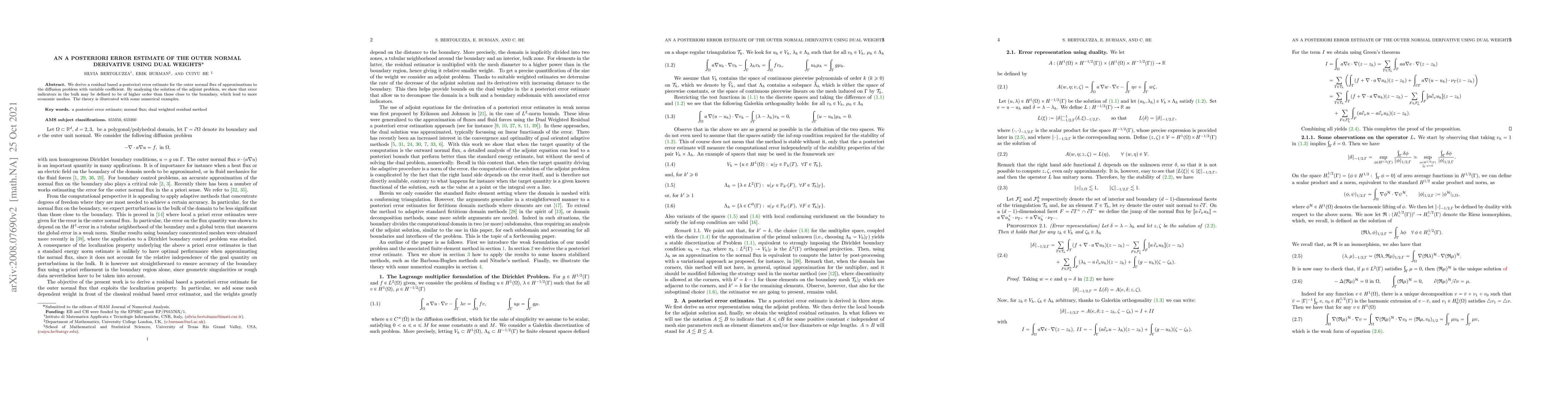 We derive a residual based a-posteriori error estimate for the outer normal flux of approximations to {the diffusion problem with variable coefficient}. By analyzing the solution of the adjoint problem, we show that error indicators in the bulk may be defined to be of higher order than those close to the boundary, which lead to more economic meshes. The theory is illustrated with some numerical examples.