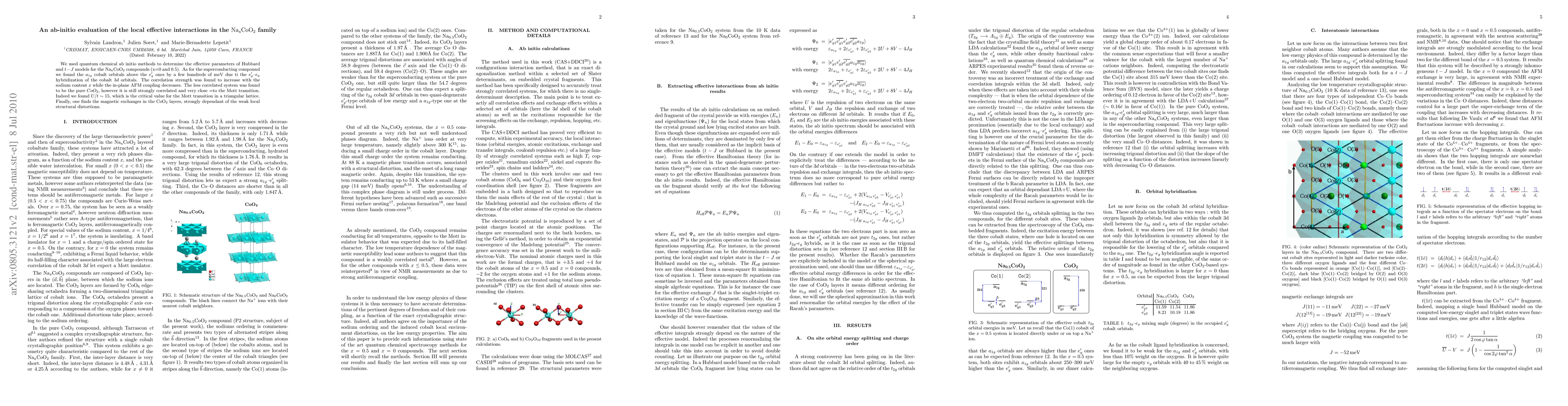 We used quantum chemical ab initio methods to determine the effective parameters of Hubbard and $t-J$ models for the $\rm Na_{x}CoO_2$ compounds (x=0 and 0.5). As for the superconducting compound we found the $a_{1g}$ cobalt orbitals above the $e_g^\prime$ ones by a few hundreds of meV due to the $e_g^\prime$--$e_g$ hybridization of the cobalt $3d$ orbitals. The correlation strength was found to increase with the sodium content $x$ while the in-plane AFM coupling decreases. The less correlated system was found to be the pure $CoO_2$, however it is still strongly correlated and very close to the Mott transition. Indeed we found $U/t\sim 15$, which is the critical value for the Mott transition in a triangular lattice. Finally, one finds the magnetic exchanges in the $\rm CoO_2$ layers, strongly dependant of the weak local structural distortions.