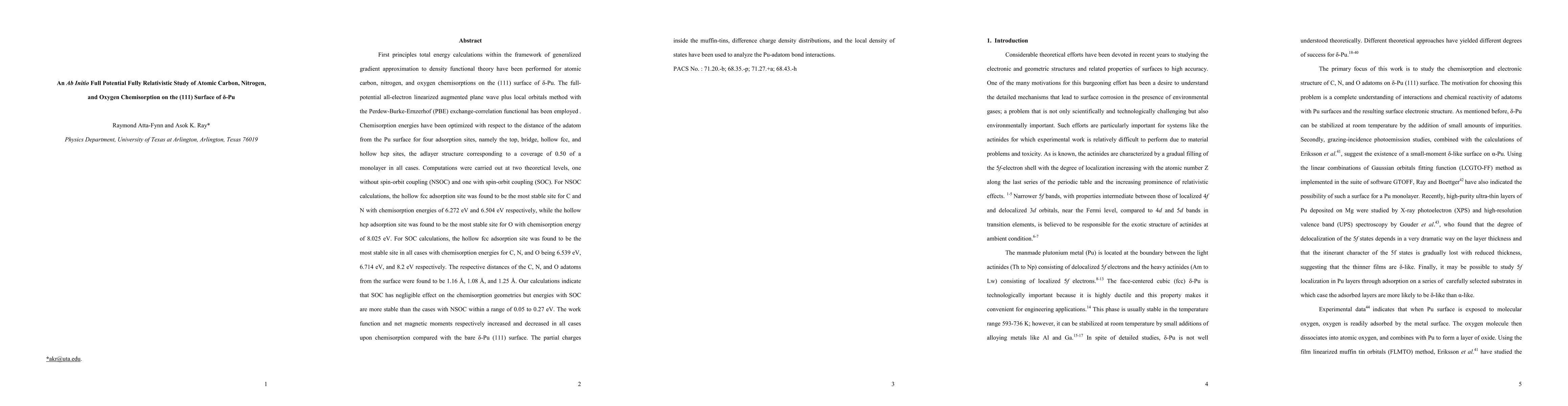 Researchers used a computational method to study how carbon, nitrogen, and oxygen atoms bond with the surface of delta-plutonium, finding that they preferentially attach at high-energy sites and alter the metal's magnetic properties.